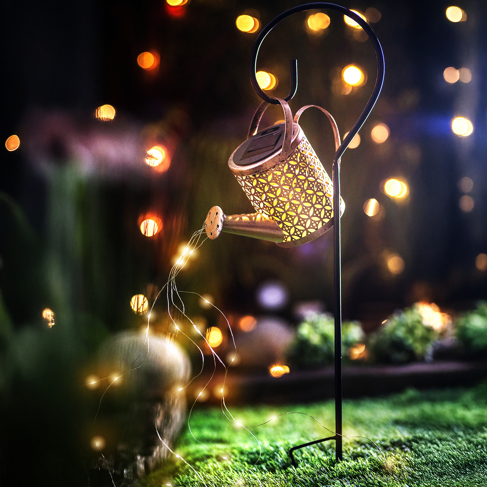 Auf Lager Versand durch AmazonLumiled Solarlampe in Form einer Gießkanne Lichterkette Aussen, Wasserdicht Gartendeko mit Schäferhaken, Vintage Lichterkette für Garten Hofweg Balkon Terrassefarblich farbe Kupfer IP44