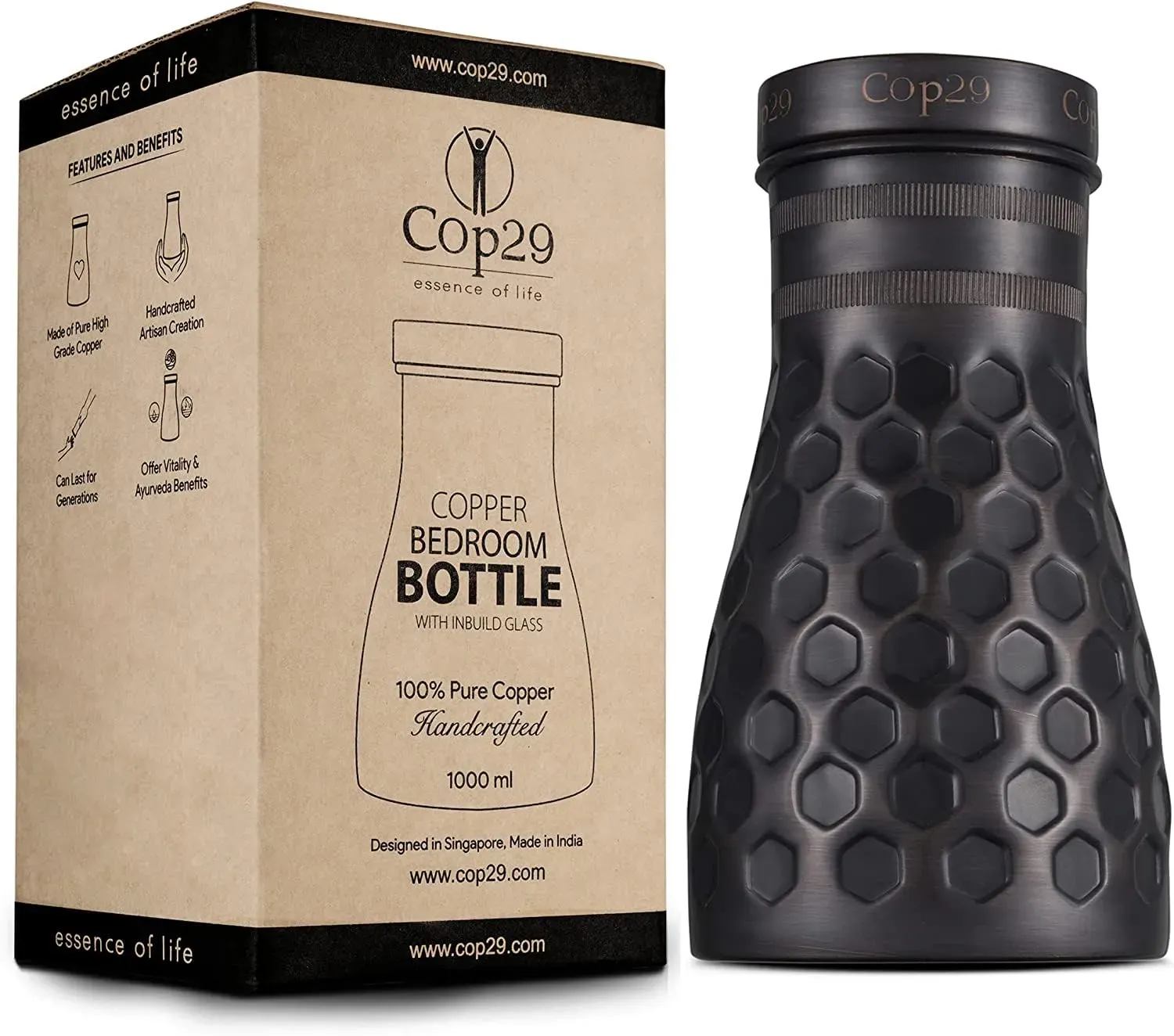 Zustand: Neu - Karaffen - Prisha India Craft RoyaltyLane - TCJ2 p-TCJ2 - EAN: 0634173337597 - Kupferkrug und 2er Set Wasserglas Durchmesser: 10,7 cm, Höhe: 20,3 cm Marke: Prisha India Craft - 2 Händler im amazon.de Marketplace Diese handgemachte Karaffe mit Wabenmuster ist ein optisches Highlight und bietet ein gutes Preis-Leistungs-Verhältnis für ein handgefertigtes Produkt. ![]() ![]() COP29 ESSENCE OF LIFE Cop29 Handgemachte Dolny Anitke Wabenmuster Kupfer Schlafzimmer Wasserflasche I Jar mit Deckel I Bettseite Wasser Karaffe (loser Deckel) -1000ml / 34oz
