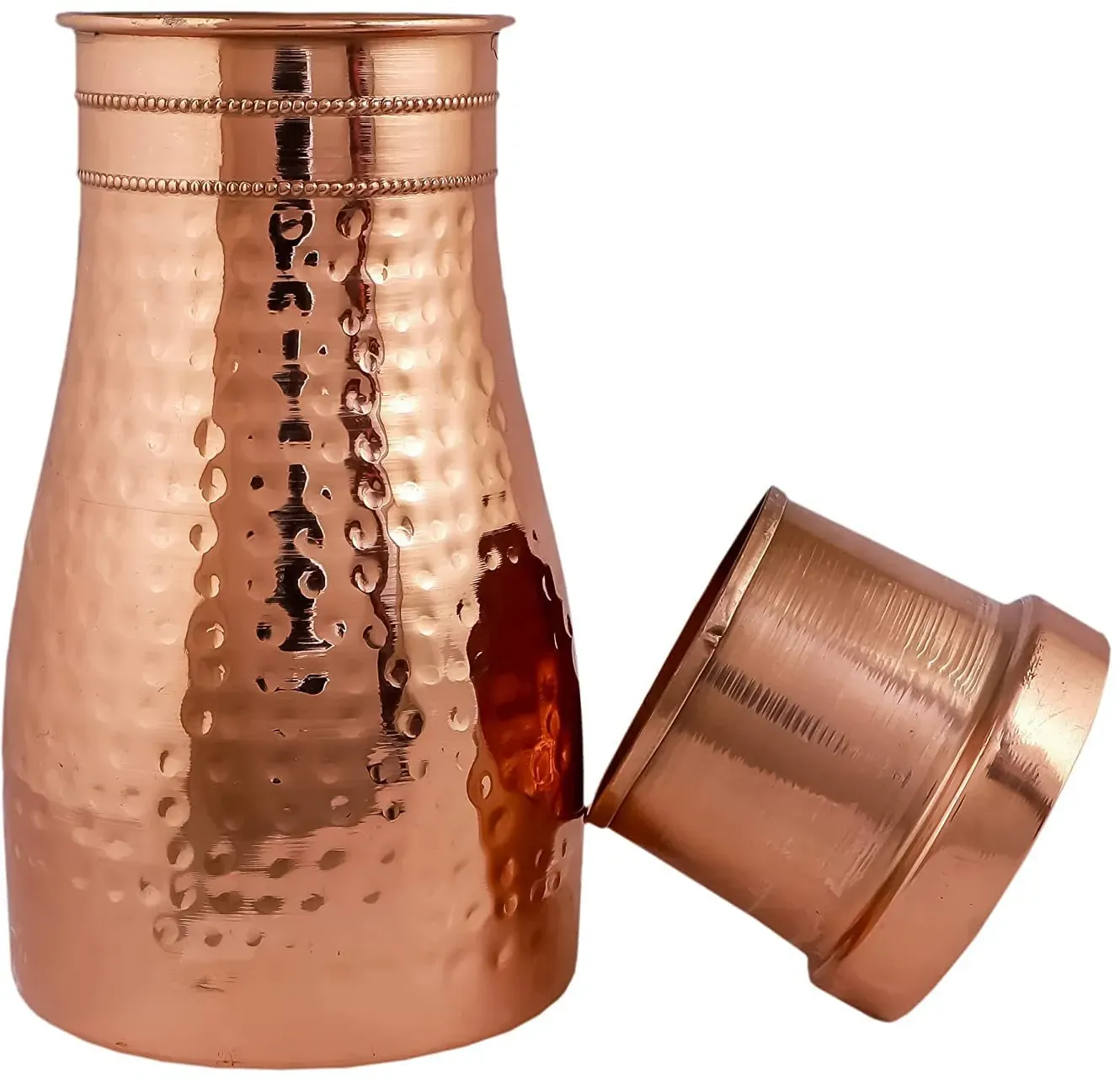 Verfügbarkeit: Auf Lager - Kategorie: Krüge & Kannen - AncientImpex - GTIN:0643129836992 - Hergestellt aus reinem und ungefüttertem Kupfer. Fassungsvermögen des Krugs: 1,5 l. Fassungsvermögen des Bechers: 350 ml Das Gefäß ist nicht poliert, lackiert oder überhaupt mit irgendetwas beschichtet. Nur reines Kupfer. Leicht zu reinigen und zu pflegen. Verwenden Sie eine Mischung aus Salz und Zitronensaft, um die Oberfläche des Gefäßes sanft mit einem weichen Baumwolltuch zu schrubben. Spülen Sie es mit normalem Wasser ab. Hergestellt in Indien. - 45,57 Euro bei Amazon Marketplace Home - gefunden von billiger.de Diese Kupferkaraffe mit langem Hals und bedrucktem Design ist eine stilvolle Option für alle, die eine ästhetisch ansprechende Karaffe suchen. ![]() ![]() Kupferkaraffe aus reinem Kupfer für Ayurveda-Gesundheitsvorteile ? langer Hals, Fassungsvermögen ? 1,8 Liter (bedruckt)