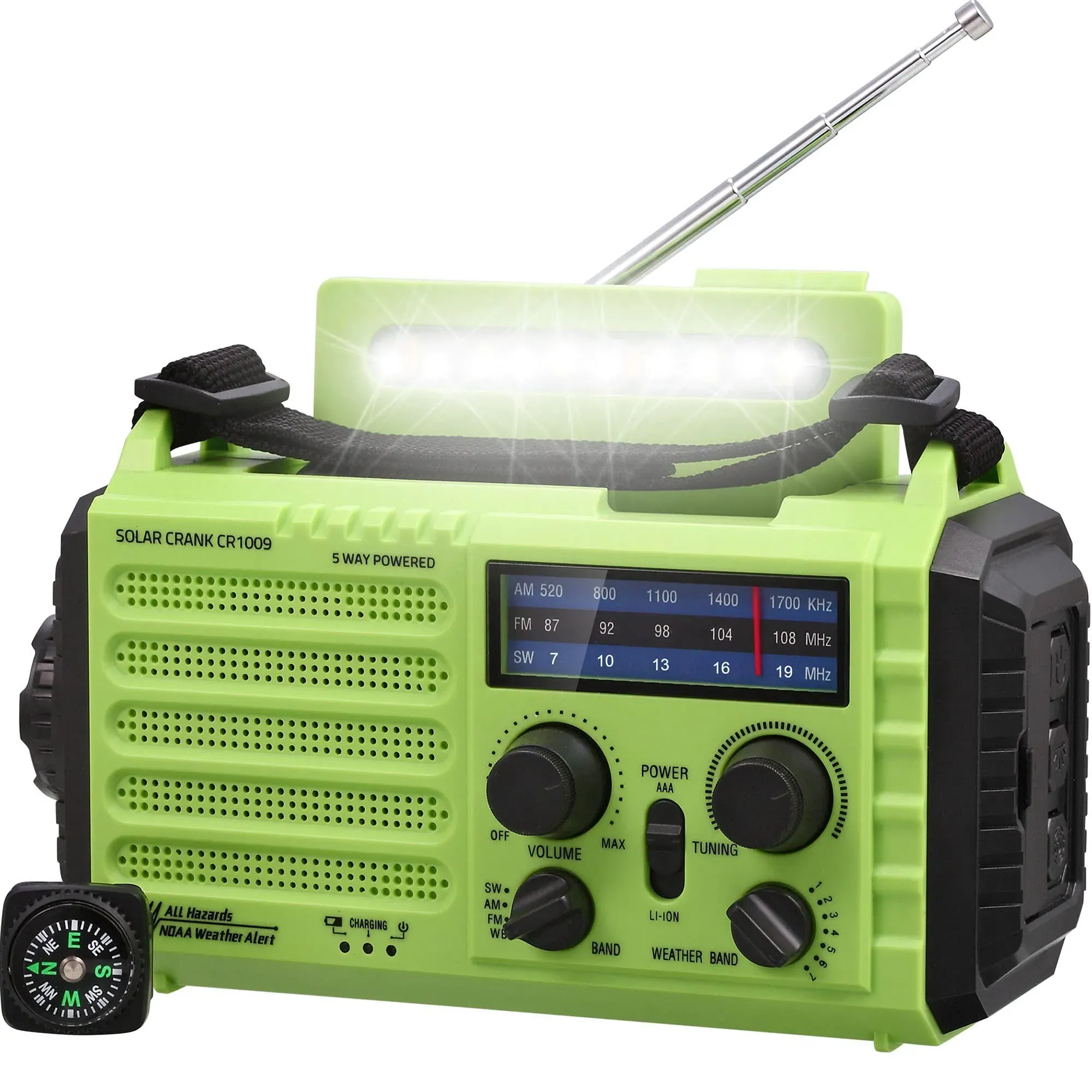 Werkzeug Elektrowerkzeuge Baustellenradios Tragbare Radios - EAN:0763755566633 - Warnung: Bitte bewahren Sie das Produkt getrennt von Kinderspielzeug und anderen Gegenständen auf, um versehentliches Verschlucken oder Ersticken zu vermeiden. Überblick: Dieses Radio ist eine Notwendigkeit für diejenigen, die im Freien arbeiten. Jeder sollte im Notfall ein solches Gerät haben. Es hat Funktionen wie Taschenlampe, Wettersendung und Power Bank hinzugefügt. Warum nicht eine Chance geben? Eigenschaften: Es handelt sich um ein solarbetriebenes AM / FM / WB-Notfunkgerät mit Kurbelaufladung, mit dem Telefone aufgeladen werden können. Die handliche Größe wird mit einem Lanyard und einem USB-Ladekabel geliefert und bietet Ihnen mehr Komfort. Ideal für Pool, Strand, Angeln, Camping. Auch Notfälle und Stromausfälle. Einfach zu bedienen, können Sie einen guten Radioempfang erhalten, schön, dass Sie klar hören. Die Taschenlampen sind ziemlich hell und die Kurbel lässt sich leicht drehen. Spezifikationen: Produkttyp: Radio Farbe Rot FM-Frequenz: 87-108 MHz AM-Frequenz: 520-1710 kHz - gefunden von Kelkoo Mit 18,99 Euro ist dieses Kurbelradio eine preiswerte Option, die Solar- und Handkurbelbetrieb sowie eine 2000mAh Powerbank für grundlegende Notfälle bietet. ![]() ![]() Kurbelradio mit Solar und LED Taschenlampe, Handkurbel Dynamo Notfallradio Batterie Power 2000MAH NI MH Weltempfänger für Camping und Outdoor