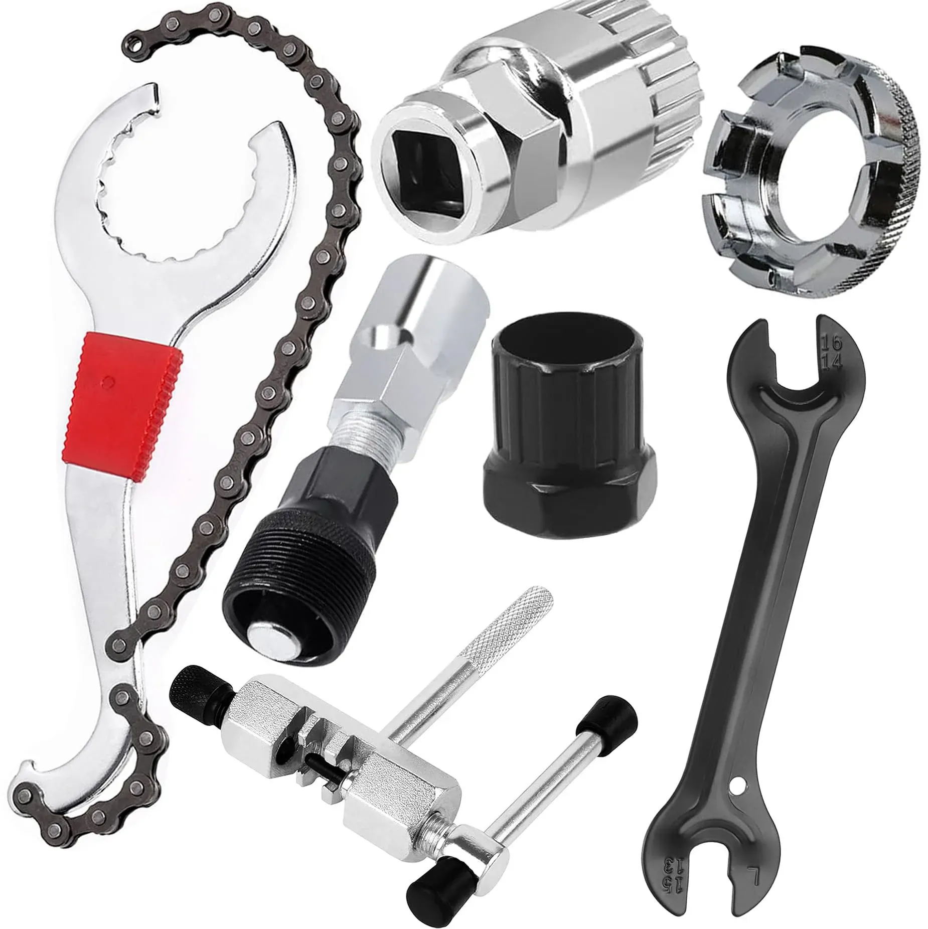 Kategorie: Sonstiges Fahrradzubehör - Laufunjoy - Multifunktionales Fahrradreparaturwerkzeugset: Die Fahrradreparaturwerkzeuge umfassen 1 Kassettenentferner mit Kettenpeitsche, 1 Fahrradkettentrenner, 1 Tretlagerentferner, 1 Kurbelabzieher, 1 x 16-mm-Schraubenschlüssel, 1 Freilaufentferner und 1 Speichenschlüssel. Alle 7 Werkzeuge erfüllen ihre Funktion perfekt. 3-in-1-Kassettenentfernerschlüssel: Unser 3-in-1-Kettenpeitschen-Zahnradschlüssel, Haken-Sicherungsringwerkzeug und Tretlagermontagewerkzeug kann verwendet werden, um die Zahnplatte des Fahrrads zu fixieren, das Tretlager und die Kassette des Fahrrads zu installieren und zu entfernen. Kurbelabzieher und Tretlagerentferner: Universeller Fahrradkurbelabzieher mit verlängertem Auswerfer zum Entfernen von Kettenblättern und Kurbel. Der Tretlagerentferner wird zum Entfernen des Fahrrad-Tretlagers verwendet und ist für jedes Fahrrad-Tretlager mit 20 Zähnen geeignet. Er beschädigt die Zähne des Tretlagers nicht. Werkzeug zum Entfernen des Freilaufs: Das Werkzeug zum Entfernen des Freilaufs kann verwendet werden, ohne dass Konen und Kontermuttern entfernt werden müssen. Es kann zum Festziehen von aufschraubbaren Freiläufen verwendet werden. Speichenschlüssel und Fahrradkettentrenner: Der Speichenschlüssel ist für Speichennippel der Größen 10, 11, 12, 13, 14 und 15 geeignet. Doppelter Antriebsstift des Kettentrenners zum einfachen Trennen der Kette, speziell zum Entfernen und Installieren von Kettenstiften entwickelt, ... Der IceToolz Kurbelabzieher für 21.81 Euro ist ein hochwertiges Werkzeug mit 8 mm Innensechskant, das für Langlebigkeit und Präzision steht. ![]() ![]() IceToolz O4C2 Kurbelabzieher Fahrrad Tretkurbelabzieher Kurbelabzug Kurbel Abzieher 8 mm Innensechskant
