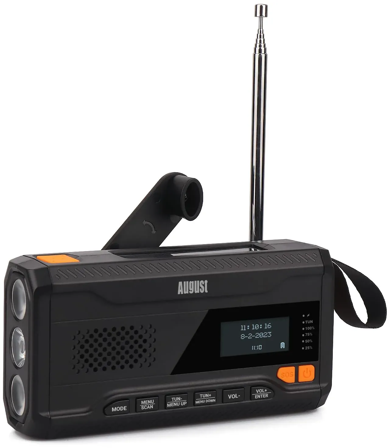 Kategorie: Radios - August - GTIN:5053047010179 - 3 Lademodi [Solar/Handkurbel/USB-C] Stromversorgung über Solar und Dynamo-Handkurbel. Keine externe Spannungsquelle erforderlich! Das Notfallradio ist perfekt als Survival und Camping Zubehör. Schnelles Aufladen mit USB-C über jeden USB-Ladeanschluss. Machen Sie sich keine Sorgen um den Ladezustand, wenn Sie in der freien Natur sind. DAB/FM/Bluetooth oder Audio-Modus Auswahl - Mit dem tragbaren Kurbelradio hören Sie Radio über DAB oder FM und bleiben so auf dem Laufenden über die neuesten Nachrichten. Genießen Sie Ihre eigene Musik über Bluetooth oder den 3,5mm Audioausgang direkt von Ihrem Smartphone. Die Teleskopantenne lässt sich für eine einfache Aufbewahrung zusammenklappen und fixieren. Vielseitige Power Bank mit 4500mAh Akku Das Kurbel.- und Solarradio verfügt einen wiederaufladbaren Akku mit einer Kapazität von 4500mAh. Laden Sie Ihre Geräte bis zu 2h über den 5V USB-Ausgang auf. Bis zu 60h Nutzung des integrierten Bluetooth Lautsprechers (bei 60% Lautstärke) bei voll aufgeladenem Akku. Kurbelfunktion und Solarmodul zum aufrechterhalten des Ladezustands und somit gleichzeitigen, kabellosen Nutzung und Ladens der Power Bank! LED Taschenlampe mit 3-Helligkeitsstufen & SOS-Funktion 3 verschiedene Helligkeitsstufen mit einer akustischen und visuellen SOS-Funktion. Nutzen Sie alle 3 LED s für eine maximale Sichtbarkeit. Kurbelfunktion und Solarmodul perfekt zur Nutzung bei Stromausfall oder in Notsituationen. Leicht & ... Ein solides DAB+-Kurbelradio mit EWF-Funktion, Solarpanel und LED, das eine gute Balance zwischen Preis und Funktionalität bietet. ![]() ![]() Infactory Mobiles DAB+-Kurbelradio mit EWF, Solarpanel, LED und USB-Netzteil