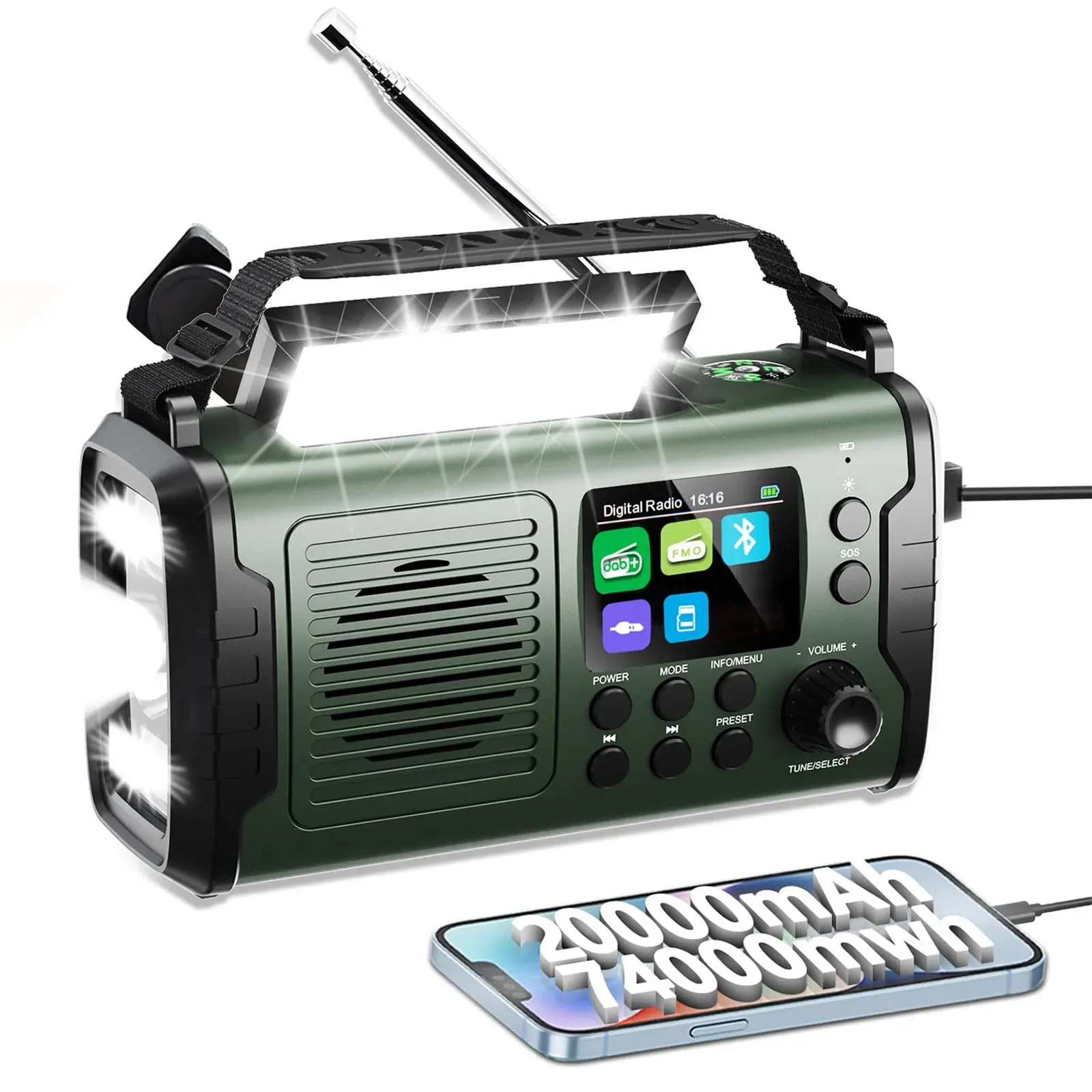 Kategorie: Radios - Wholede - DAB+/UKW-Kurbelradio DAB-Band (174-240 MHz) und klassischen FM-Frequenzbereich (87.5-108 MHz). Sie kristallklaren Digitalempfang von bis zu 80 Senderfavoriten (40 DAB+/40 UKW) dank einfacher Einrichtung und schnellem automatischem Suchlauf.es ist Ihr perfekter Partner für Outdoor-Abenteuer und Krisensituationen: Die integrierte SOS-Alarmfunktion, der präzise Kompass sowie die helle LED-Taschenlampe mit Leselampenfunktion machen es zum unverzichtbaren Begleiter bei Wandertouren, Stromausfällen oder Notfällen. Das kompakte, Gehäuse kombiniert Langlebigkeit mit portabler Handlichkeit, sodass Sie stets bestens informiert, abgesichert und unterhalten sind 20000mAh Notfallradio mit 3 Ladeoptionen Dank des riesigen 20000mAh-Akkus und drei flexiblen Lademöglichkeiten: Schnellladung per USB-C, Solarenergie über das integrierte Solarpanel oder manuelles Aufladen per Handkurbel. Egal ob Smartphone, Tablet oder andere USB-Geräte diese radio lädt Ihre Geräte zuverlässig, selbst in abgelegenen Gebieten oder bei Stromausfällen. so bleiben Sie unabhängig von Steckdosen und gewappnet für jeden Notfall! 11-in-1 Multifunktionales Notfallradio Wholede Notfallradio vereint lebenswichtige Funktionen in einem kompakten Design: 1 Notfallradio220000mAh Mobilstrom3SOS-Alarm4hellem Flashlight5LED Leselampe6integriertem Kompass. während 7Bluetooth, 8AUX-IN und 9TF-Karten-Schnittstellemoderne Unterhaltungsmöglichkeiten bieten. 10TFT Bildschirm11IP53 Wasserdicht.Ob bei ... Ein leistungsstarkes Kurbelradio mit beeindruckenden 20000mAh Akku, Bluetooth, TF-Karte und AUX IN, das keine Wünsche offen lässt. ![]() ![]() diwueo 20000mAh Kurbelradio mit Bluetooth,DAB/FM Notfall-Solarradio mit TF Karte, AUX IN, TFT Bildschirm,DAB+/FM Radio mit LED Taschenlampe & Leselicht,USB, SOS für Camping, Notfälle & Blackout(ArmyGreen)