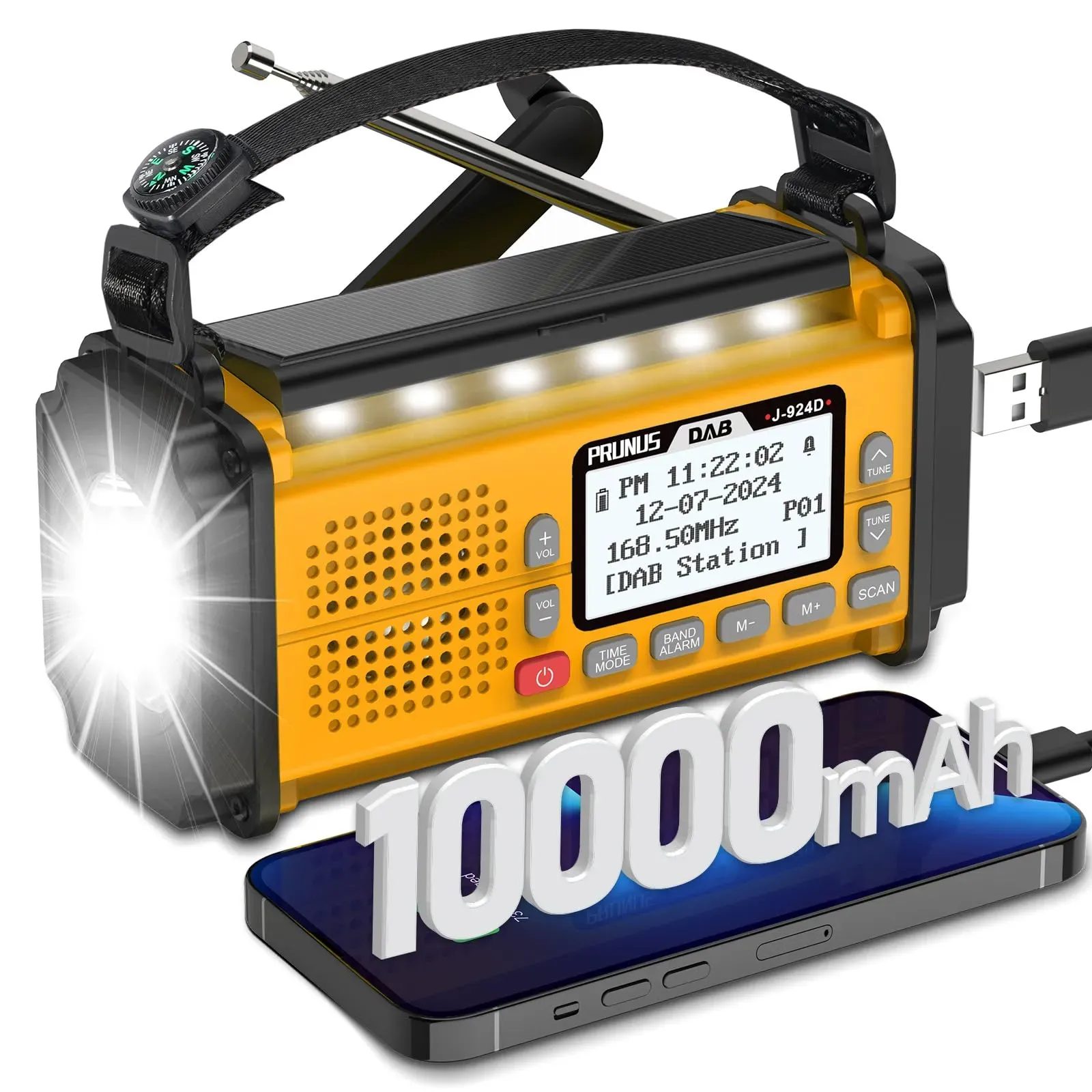 Kategorie: Radios - Prunus - Multifunktionales Tragbares Radio Dieses J-924 Digitalradio (Abmessungen: 17,1 x 9,1 x 7,1 cm, Gewicht: 568 g) ist nicht nur ein DAB/FM Radio, sondern auch ein Bluetooth-Lautsprecher . Es über verfügt über einen SOS-Alarm und einen eingebauten Kompass. Die integrierte Taschenlampe und Leselampe machen es perfekt zum Lesen und zur Beleuchtung im Dunkeln. Dieses radio notfall ausrüstung ist ideal für Wanderungen, Camping, Stromausfälle und Notfälle. DAB/DAB+/UKW Digital Radio Frequenz: DAB/DAB+ 168-240MHz, FM 87-108MHz. Das DAB plus radio ist mit einem DSP-Chip und einer langen (52cm) einziehbaren Antenne ausgestattet, die einen großartigen Empfang gewährleistet, um viele klare Sender ohne Rauschen zu empfangen. Sie können automatisch verfügbare Sender suchen und speichern und manuell bis zu 200 Sender (100 DAB+100FM) abspeichern, damit Sie Ihre Favoriten bequem abrufen können. 4 Stromoptionen Dieses kurbelradio dab mit 4 Ladeoptionen, verfügt über einen eingebauten Akku mit 10000 mAh Kapazität. Die Typ-C-Ladung ist praktisch für den täglichen Gebrauch, die Handkurbel und das Solarpanel machen das Radio zu einer unverzichtbaren Ergänzung der Campingausrüstung oder des Notfallkits. Wenn der eingebaute Akku leer ist, Radio batteriebetrieben mit 3 AAA-Batterien (nicht im Lieferumfang enthalten) sind perfekt für Stromausfälle und Reisen. Notfall-Lebensretter Das akku Radio ist mit einem eingebauten 10000mAh-Akku ausgestattet, der ein schnelles ... Dieses Modell bietet eine enorme 20000mAh Powerbank und 11-in-1 Funktionen, inklusive Kompass und AUX IN, für maximale Vielseitigkeit. ![]() ![]() Wholede 20000mAh Kurbelradio mit Handyladefunktion Solar DAB/DAB+/UKW Radio,3 Lademethoden 11 in 1 Bluetooth 5.3 Tragbares Notfallradio mit Powerbank,SOS,Taschenlampe,Kompass,AUX IN,TF Karte,Leselampe