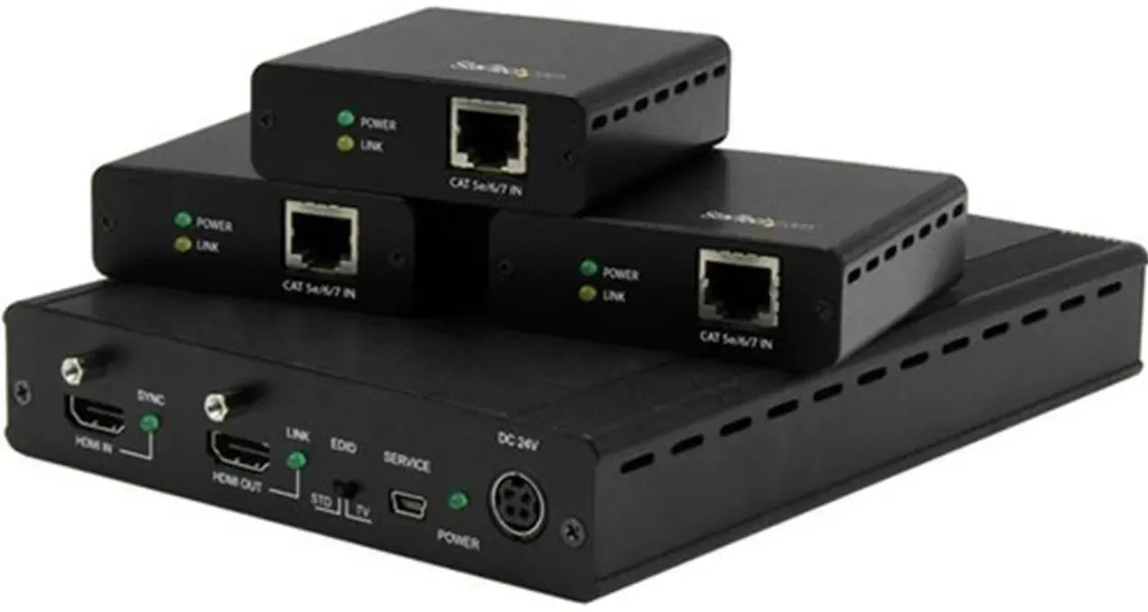 Kategorie: Sonstiges TV-Zubehör - Startech - GTIN:0065030864558 - Das 3 Port HDBaseT Extender Kit von StarTech ermöglicht die übertragung von HDMI-Signalen über grosse Entfernungen mithilfe von CAT5e, CAT6 oder CAT7 Kabeln. Dieses Kit umfasst einen Sender und drei Empfänger, die eine maximale Auflösung von bis zu 4096 x 2160 Pixel unterstützen. Es ist ideal für den Einsatz in verschiedenen Umgebungen, darunter Büros, Einzelhandel, Gastronomie und Bildungseinrichtungen. Der Sender bietet zudem einen lokalen HDMI-Ausgang, um einen vierten Bildschirm anzuschliessen. Die HDBaseT-Technologie gewährleistet eine zuverlässige und qualitativ hochwertige Videoübertragung, selbst über längere Distanzen, was es zu einer praktischen Lösung für moderne audiovisuelle Anforderungen macht. - Unterstützt eine maximale Auflösung von 4096 x 2160 Pixel für gestochen scharfe Bildqualität - Inklusive drei Remote-Empfängern für flexible Installation an verschiedenen Standorten - Lokaler HDMI-Ausgang am Sender ermöglicht den Anschluss eines vierten Bildschirms - Kompatibel mit CAT5e, CAT6 und CAT7 Kabeln für vielseitige Verkabelungsoptionen. - 552,61 Euro bei Galaxus.de - gefunden von billiger.de Ein High-End HDMI HDBaseT Splitter von ATEN mit 8 Ports, ideal für große Installationen mit hoher Reichweite und Qualität. Reichelt.d e