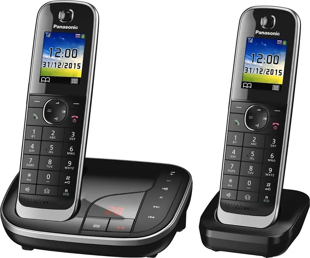 Auf Lager Versand durch AmazonPanasonic KX-TGJ322GB Familien-Telefon mit Anrufbeantworter (schnurloses Telefon DUO, Mobilteil, strahlungsarm, Anrufschutz, DECT Basistation) schwarz