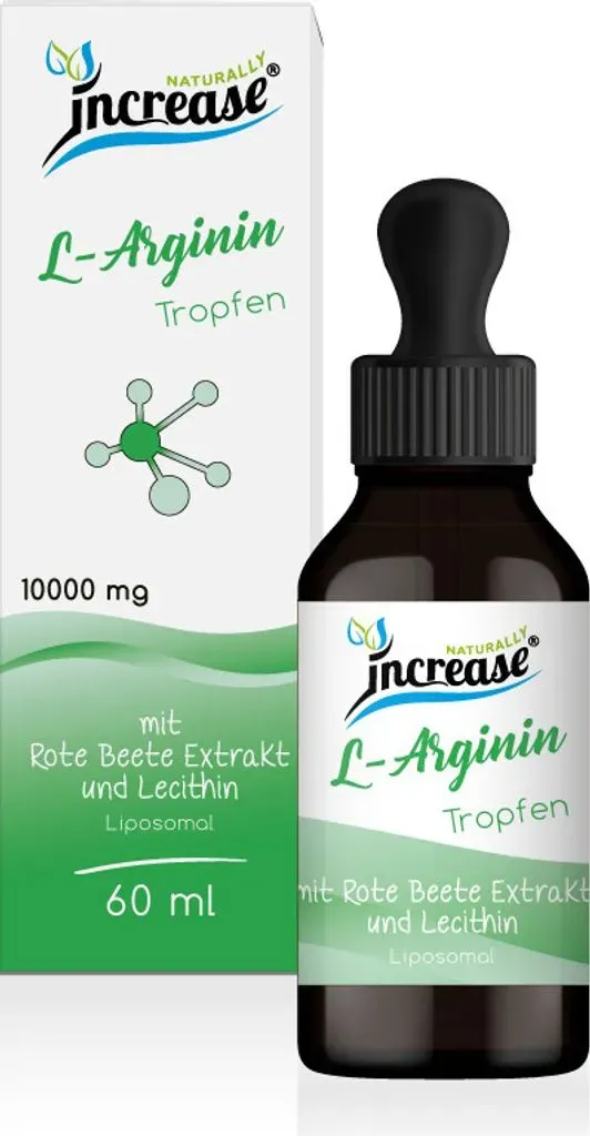 Kategorie: Nahrungsergänzungsmittel - APOrtha - GTIN:4260232558106 - HOCHDOSIERTES PULVER : Eine Tagesportion von 5g versorgt Sie mit 2.080 mg reinem L-Arginin und 1.650 mg reinem L-Citrullin in einem Verhältnis von 2 zu 1,6 von L-Arginin zu L-Citrullin - die Pulverform ermöglicht eine exakte & individuelle Dosierung. SETZEN SIE AUF QUALITäT: Argiviron L-Arginin wird durch Biofermentation gewonnen, ist frei von tierischen Bestandteilen und für die vegetarische und vegane Ernährung geeignet. Ebenso wird L-Citrullin Malat durch Biofermentation hergestellt FREI VON UNERWüNSCHTEN ZUSATZSTOFFEN: Dieses Produkt ist rt frei von Allergenen, Magnesiumstearat, Titandioxid, Carrageen und Polyethylenglykol (PEG) sowie von Aromen, Farb- und Süßungsmitteln. Selbstverständlich sind alle Inhaltsstoffe auf Schwermetalle und Pestizide geprüft. Wir verwenden laut Gesetzgeber auch keine Rohstoffe, die gentechnisch verändert (GMO), bestrahlt oder mit Ethylenoxid behandelt wurden. EINFACHE DOSIERUNG: Unser Pulver ist einfach zu dosieren: 2x täglich 1 Portion (ca. 1 Messlöffel - 2,5 g Pulver) vor einer Mahlzeit mit reichlich Wasser einnehmen. PULVERMISCHUNG UND ABFüLLUNG IN DEUTSCHLAND: Unsere Nahrungsergänzungsmittel wurden selbstverständlich allergenfrei (gemäß EU-VO 1169/2011) aspartamfrei, laktosefrei, glutenfrei, sojafrei und gentechnikfrei (GVO-frei) für Sie in streng kontrollierten Produktionsanlagen in Deutschland produziert. - 34,90 Euro bei Amazon Marketplace Health & Personal Care - ... Liposomale L-Arginin Tropfen bieten eine hohe Bioverfügbarkeit und sind eine gute Alternative zu Kapseln oder Pulver. ![]() ![]() Increase Liposomale L-Arginin Tropfen hochdosiert - (300.000mg L-Arginin pro Packung) 10.000mg L-Arginin pro Tagesdosis mit Rote Bete Extrakt - MCT öl