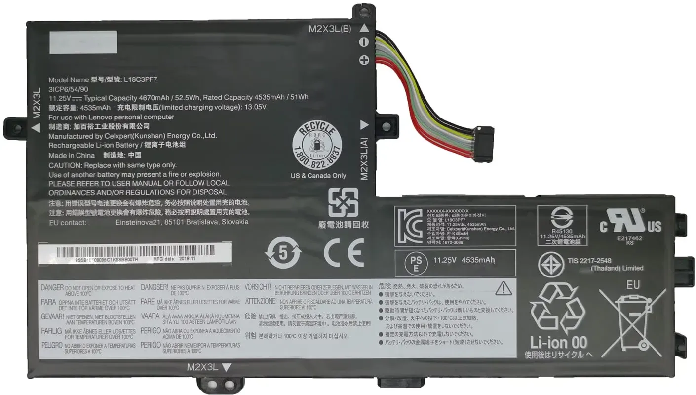 Auf Lager Versand durch AmazonL18C3PF7 L18M3PF7 L18L3PF3 L18C3PF6 L18L3PF2 Laptop-Akku-Ersatz für Lenovo ideapad S340-14IML/14API/14IIL/14IWL C340-15IWL/15IIL S340-15IWL/15API/15IIL Flex-15IWL/15IML/15IIL Serie (11.25V 52.5Wh)