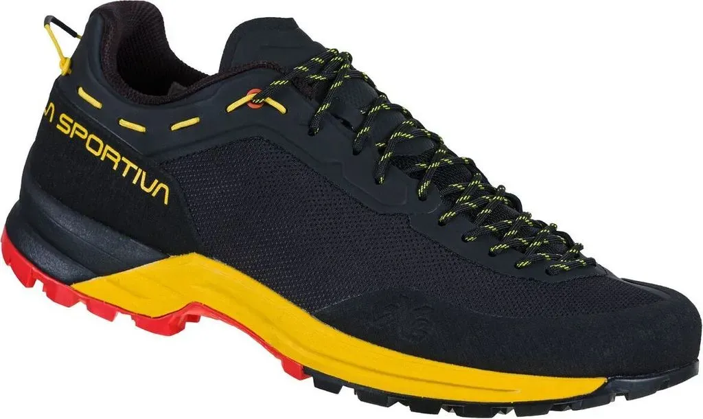 Kategorie: Wanderschuhe - La Sportiva - GTIN:8020647842124 - DETAILS La Sportiva TX Guide black/yellow Zustiegsschuhe - Obermaterial : Hoch abriebfeste Mesh + Mikrofaser- Innenverstärkungen + externe TPU-Verstärkungen + Rand aus PolyurethanTech LiteTM - Innenmaterial : Rutschfestes, atmungsaktives Mesh - Zwischensohle : Doppelt verdichtetes komprimiertes EVA + TPU - Fussbett : Ortholite Approach - Sohle : Außensohle mit doppelter Vibram MegaGrip Mischung - Gewicht : 350gr 1/2 Paar bei Gr. 42 TX Guide ist der technischste Schuh der Linie TX Series La Sportiva. Entwickelt wurde dieser Schuh für technische Zustiege und Bergsteigen für Bergführer und all jene, die am Berg beschäftigt sind und ein leistungsfähiges und langlebiges Schuhwerk suchen. TX Guide ist vielseitig, leicht, bietet Schutz und eignet sich perfekt für walk-run & climb. Das sieht man auch am Look, der an der Kombination zwischen running/approach und der technischen Lösung aus der Climbing-Welt (Sohle, Rand und Schnürung) orientiert ist. Die neue Tech Fit Passform, schlicht und eng anliegend, sorgt für maximale Leistungen. Die sehr stabile Spitze ermöglicht während des Bergsteigens optimalen Halt an Kanten.Breite FerseOptimaler HaltLanglebigStabiler Mittelfuß Anspruchsvoller Schuh sucht herausfordernde Route - Rutschiger Untergrund, Klettermöglichkeiten und Geröll schrecken ihn nicht ab.Einsatzbereich: Bergsteigen, ZustiegVielseitig, leicht und schützend, ideal für walk-run und ZustiegeTech Fit: präzise, ... ![]() ![]() La Sportiva Tx Guide Leather Zustiegsschuhe Schwarz EU 43 1/2 Mann Schwarz EU 43 1/2 - Schwarz - 43,5