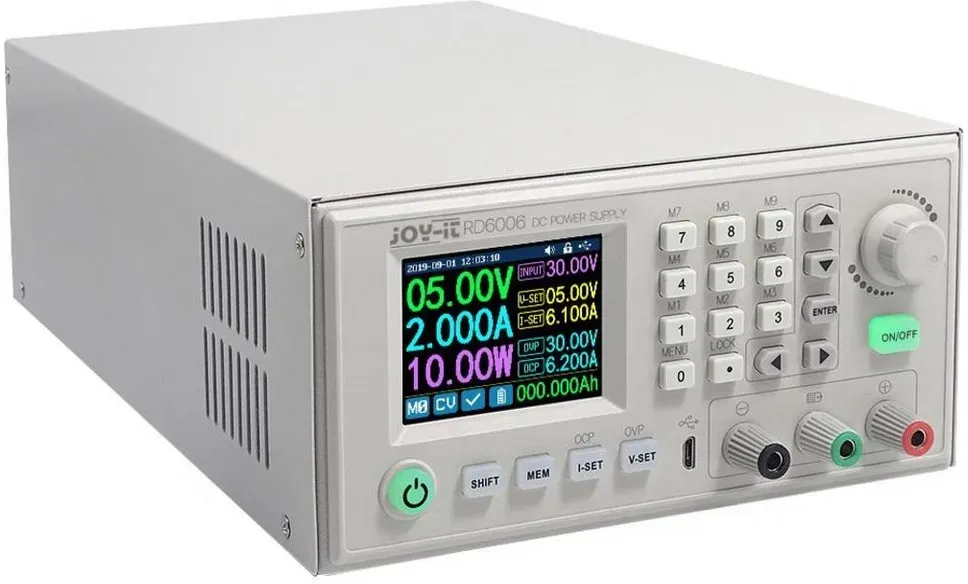 Der angezeigte Preis könnte seit dem letzten Update gestiegen sein - High Power 600W 900W Labor DC Netzteil USB Port 30V 20A 30A Einstellbare Tisch Programmierbare Netzteil 60V 10A 20A OCP - Zustand: NEW - bei Aliexpress DE - gefunden von Buycentral Das Joy-it RD6006-Comfort ist ein programmierbares Labornetzgerät mit WiFi-Funktion, das eine moderne und komfortable Steuerung ermöglicht. ![]() ![]() Joy-it RD6006 Labornetzgerät - Complete Set - WiFi JT-RD6006-Comfort Labor-Netzteil (fernsteuerbar, programmierbar)
