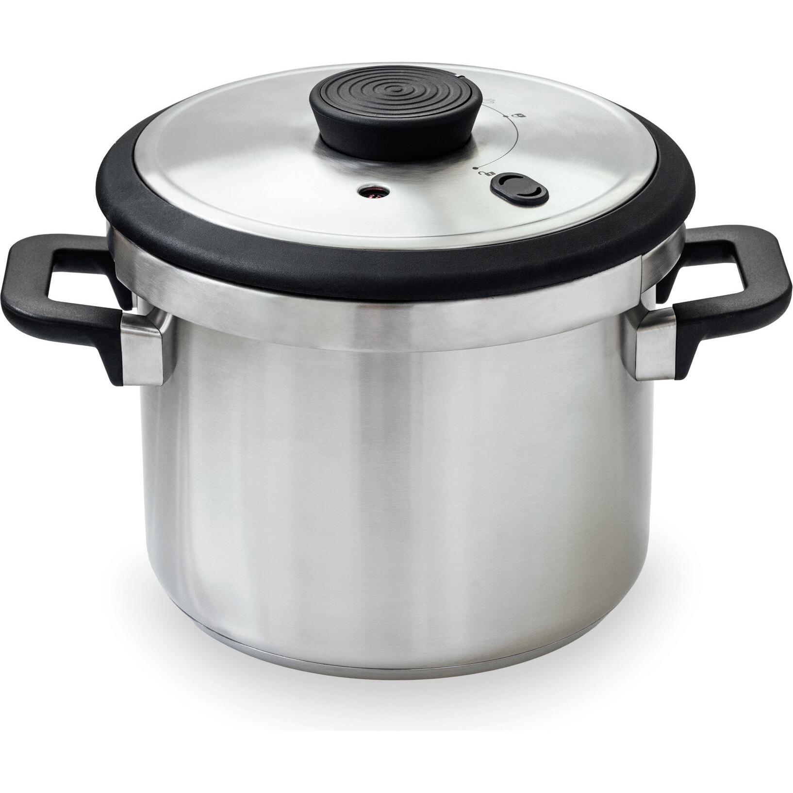 Zustand: Neu - Schnellkochtöpfe - LACOR Lacor Menaje Profesional - 71788 - EAN: 8414271717888 - Hergestellt aus 18/10 Edelstahl von höchster Qualität mit satinierter Oberfläche. Hitzebeständige Griffe sorgen für eine komfortable und sichere Handhabung. Sandwich-Wärmediffusor unten; Schnelle und gleichmäßige Wärmeverteilung. Kompatibel mit allen Wärmequellen, einschließlich Induktion. Innenmarkierung in Litern. Voll einstellbare Kochstufe: Drehen Sie den Knopf und wählen Sie den Druck zwischen 1 und 100kpa. Es spart 70% Energie und bewahrt gleichzeitig das Aroma und den Geschmack von Lebensmitteln. Einfach und 100% sicher: Einhändiges Öffnungs- und Schließsystem. Dreifaches Sicherheitssystem: Sicherheitsventil, wirkt bei übermäßigem Druckanstieg und entlastet den Topf schnell. Schließsystem, das es unmöglich macht, den Deckel während des Kochens zu öffnen, und seitliches Sicherheitsfenster. - bei Amazon.de ![]() ![]() Lacor Sicuro (27 cm, Dampfkochtopf, Edelstahl) (71786)
