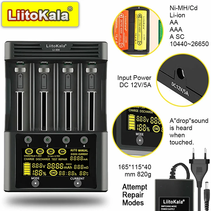 Der angezeigte Preis könnte seit dem letzten Update gestiegen sein - Intelligentes 4-Slot-Akkuladegerät tragbar für 3,7 V 1,5 V Li-Ion 18650 26650 21700 18500 1,2 V NI-MH Ni-Cd AA AAA 3,2 V LiFePO4 - Zustand: NEW - bei Aliexpress DE - gefunden von Buycentral ![]() LiitoKala Lii-600 3,7 V 3,85 V Li-Ion 18650 1,2 V 1,5 V Ni MH AA AAA 3,2 V/3,65 V LiFePO4 wiederaufladbares Smart-Reparatur-LED-Ladegerät