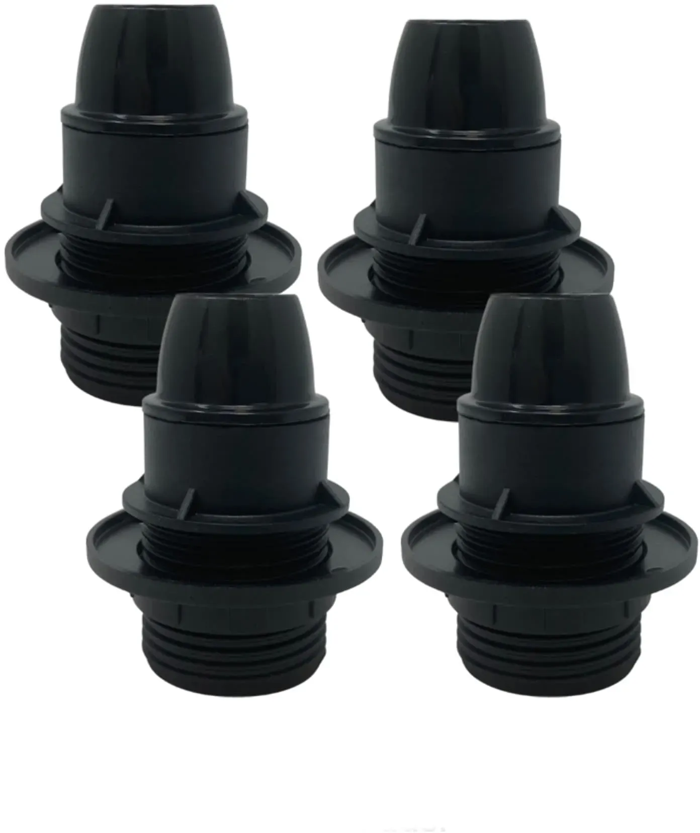 Auf Lager Versand durch AmazonHALOTEC | 4er-Pack E14 Lampenfassungen | Mit Gewinde und Lampenschirm-Klemmring | E14 Fassung schwarz mit Gewinderohr | Farbe Schwarz