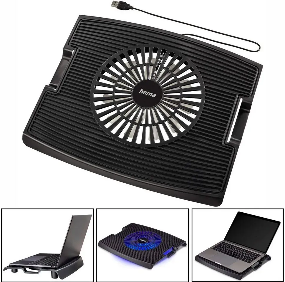 lieferbar-in 2-3 Werktagen bei dirHama Notebook-Kühler USB Notebook-Kühler Pocket Lüfter Cooler, Ständer Universal passend für Notebook Laptop 11" bis 17,1" schwarz