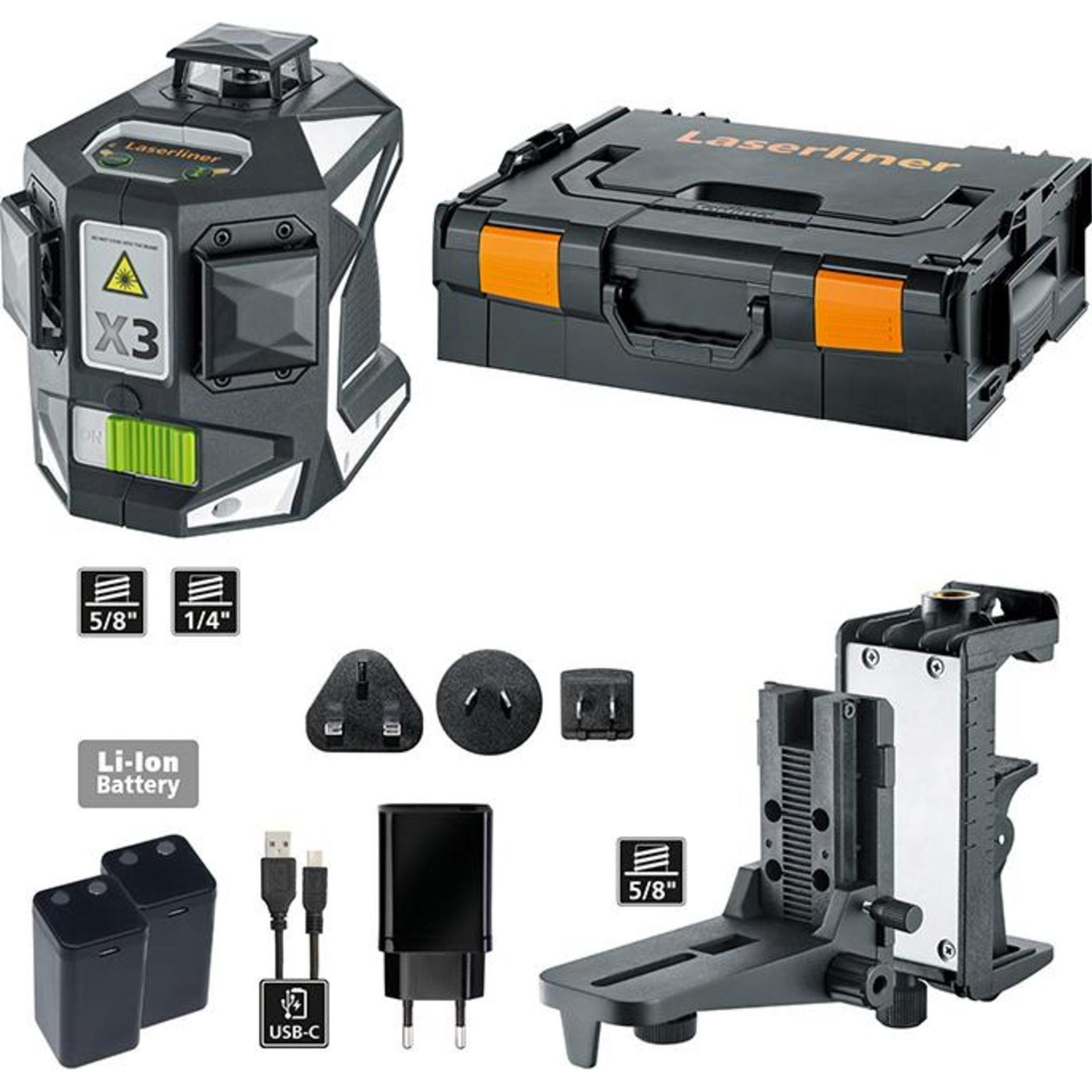 keine Angabe Nur noch 1 auf LagerUmarex Laserliner X3-Laser Pro Professionelle Kreuzlinienlaser (dreidimensionaler Laser, horizontal + vertikal, Lasermessgerät mit Akku, Lotfunktion, integrierter Handempfänger-Modus)