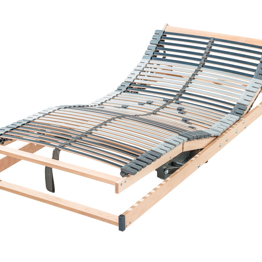 Verfügbarkeit: 9-10 Werktage - Kategorie: Lattenroste - Beco - GTIN:4019793480667 - 7 ZONEN Lattenrost €“ produziert in Deutschland €“ universell geeignet auch für Bettgestelle mit Bettkasten bzw. mit QuerstrebenKopf-, Rücken-, Ober- und Unterschenkelteil elektrisch per Handschalter zu verstellen, inkl. Notabsenkung.Elektrischer Lattenrost wird komplett montiert geliefert42 LEISTEN: dank der 42 schmalen Leisten bis zu 50% elastischere und €žpunktgenauere€œ Körperanpassung als bei herkömmlichen Lattenrosten mit 28 FederleistenLattenrost: Motor-Lattenrost Ultra Move42 superelastische Federholzleisten (dank der 42 schmalen Leisten bis zu 50% elastischere und €žpunktgenauere€œ Körperanpassung als bei herkömmlichen Lattenrosten mit 28 FederleistenGeringer Stromverbrauch, auch im Stand-by-ModusFlexible, bis an den Rand führende Abfederung (keine Besucherritze bei 2 Lattenrosten in einem Doppelbett) durch holmüberdeckende Trio-Federungselemente aus Synthese-KautschukIndividuelle 6-fache Härteregulierung im mittleren Liegebereich zur Anpassung an das Gewicht und die gewünschte LiegehärteHoher Federungskomfort durch dauerhaft formstabile Trio-Kappen aus Synthese-KautschukSpezielle Schulter- und Beckenzone zur Entlastung der WirbelsäuleHarmonische Druckverteilung und Stabilisierung durch Textilgurt (100% PP)langlebig und stabil durch mehrfach-furniertes Schichtholz und Massivholz aus Birke und Buche inkl. Schutzummantelung gegen FeuchtigkeitFür alle ... Ein weiterer elektrischer Lattenrost von BECO mit Funk-Fernbedienung, der hohen Komfort und Bequemlichkeit bietet. ![]() Lattenrost mit Motor BECO 'Flex Motor Funk', grau, B:90cm H:7,5cm L:200cm, Lattenroste, mit Funk-Fernbedienung, erhältlich in 90x200 cm und weiteren Größen