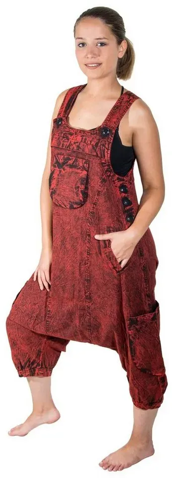 lieferbar-in 2-3 Werktagen bei dirKUNST UND MAGIE Latzhose Overall Unisex Vintage Latzhose Ibiza stonewashed Haremshose rot XXL