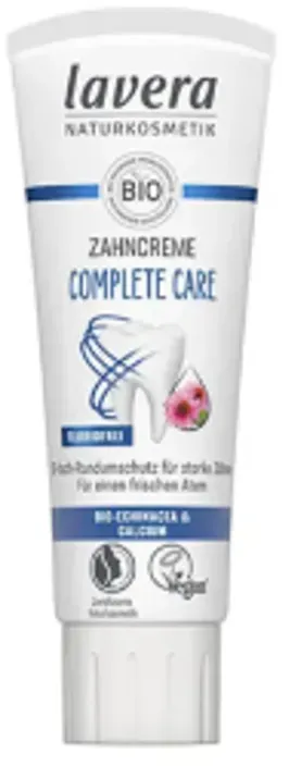Kategorie: Zahnpflegeartikel - Lavera - GTIN:4021457652297 - Die Lavera Zahncreme Complete Care fluoridfrei bietet den Zhnen einen 5-fach Rundumschutz. Eigenschaften der Lavera Zahncreme Complete Care fluoridfrei Schtzt vor Karies Entfernt zuverlssig Zahnbelag Schtzt vor Zahnsteinbildung Schtzt das Zahnfleisch und beugt Parodontose vor Verleiht einen frischen Atem Anwendung der Lavera Zahncreme Complete Care fluoridfrei Regelmig 2 x tglich Zhneputzen - 2,86 Euro bei HAGEL-SHOP - gefunden von billiger.de Diese fluoridfreie Zahnpasta in der gröÃ?eren 125ml Packung bietet mehr Inhalt für den Preis. ![]() ![]() lavera Complete Care Fluorid-freie Zahnpasta 125ml