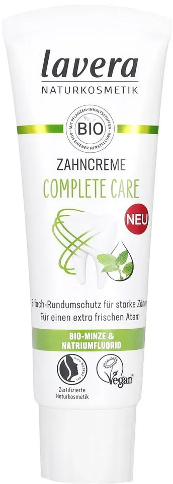 3 Händlerangebote bei billiger.de - Kategorie: Zahnpflegeartikel - Lavera - lavera Zahncreme Complete Care fluoridfrei dt - GTIN:4021457629091 - PZN:14376878 Dies ist die günstigste Zahnpasta mit Fluorid in StandardgröÃ?e. ![]() ![]() Lavera Zahncreme Complete Care Zahnpasta Minze 75 ml
