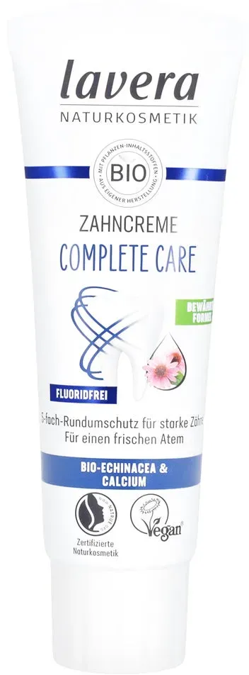 Auf Lager Versand durch Amazonlavera Zahncreme Complete Care Fluoridfrei - 5-facher Schutz - Bio-Pflanzenwirkstoffe - Bio Echinacea & Calcium - Vegan - Naturkosmetik - 75 ml