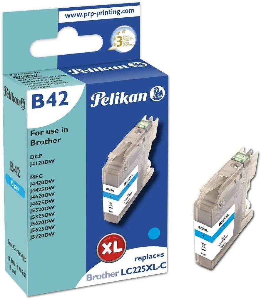 Zustand: Neu - Tintenpatronen für Drucker Tintenpatronen für Tintenstrahldrucker - prindo Prindo - PRIBLC225XLM - EAN: 4251316500364 - - Verkäufer: prindo im amazon.de Marketplace Die Pelikan B42 LC-225XL cyan ist eine hochwertige kompatible Patrone, die eine gute Druckqualität zu einem fairen Preis bietet. ![]() ![]() Pelikan B42 LC-225XL cyan