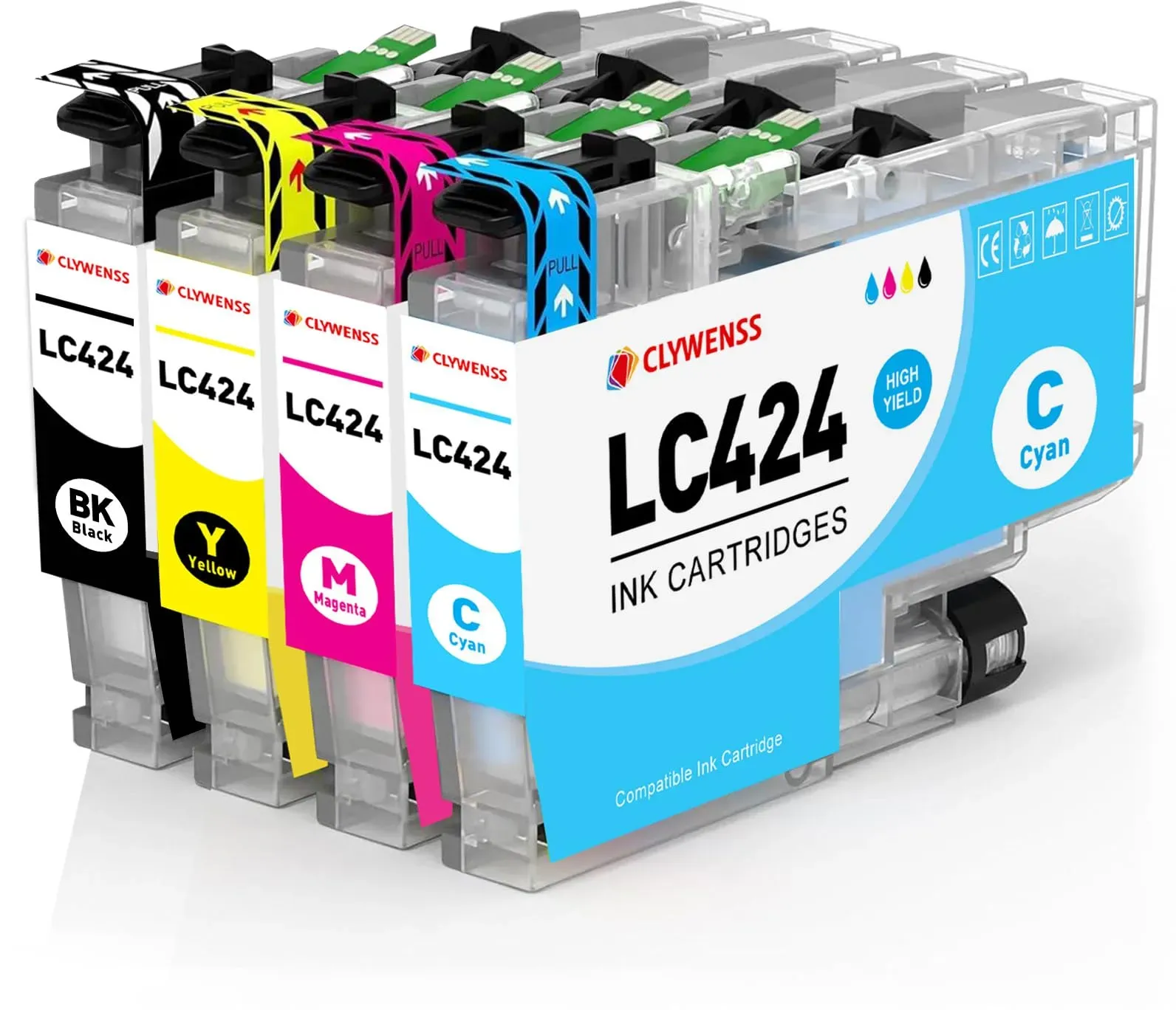 Auf Lager Versand durch AmazonClywenss LC424 Druckerpatronen Kompatibel für Brother LC-424 LC-424VAL LC424VAL Patronen Multipack für DCP-J1200W DCP-J1200WE DCP-J1200 Tinten, 4er-Pack (Schwarz, Cyan, Magenta, Gelb)