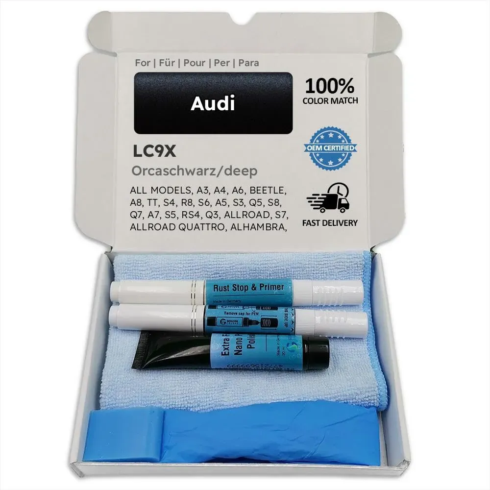 Stellen Sie sicher, dass der Lack für Ihr Fahrzeugmodell und die entsprechende Lackart (z.?B. Perleffekt, Metallic) geeignet ist. ? LC9X Deep Black Pearl für AUDI (VW) Viele Sets enthalten Basislack, Klarlack (1K oder 2K) und Grundierung. Für optimale Ergebnisse empfiehlt sich die Verwendung von Silikonentferner, Staubbindetüchern, Schleifpapier und Schutzfolie. Bei Kunststoffteilen (z.?B. Stoßstangen) ist ein Kunststoffhaftvermittler empfehlenswert. ? Kunststoffsprayset für Audi/VW DEEP BLACK LC9X Die Lacke sind extrem entzündbar und können Augenreizungen verursachen. Beachten Sie die Sicherheitshinweise auf der Verpackung. ? Beliebte Produktmerkmale, Marken und Modelle