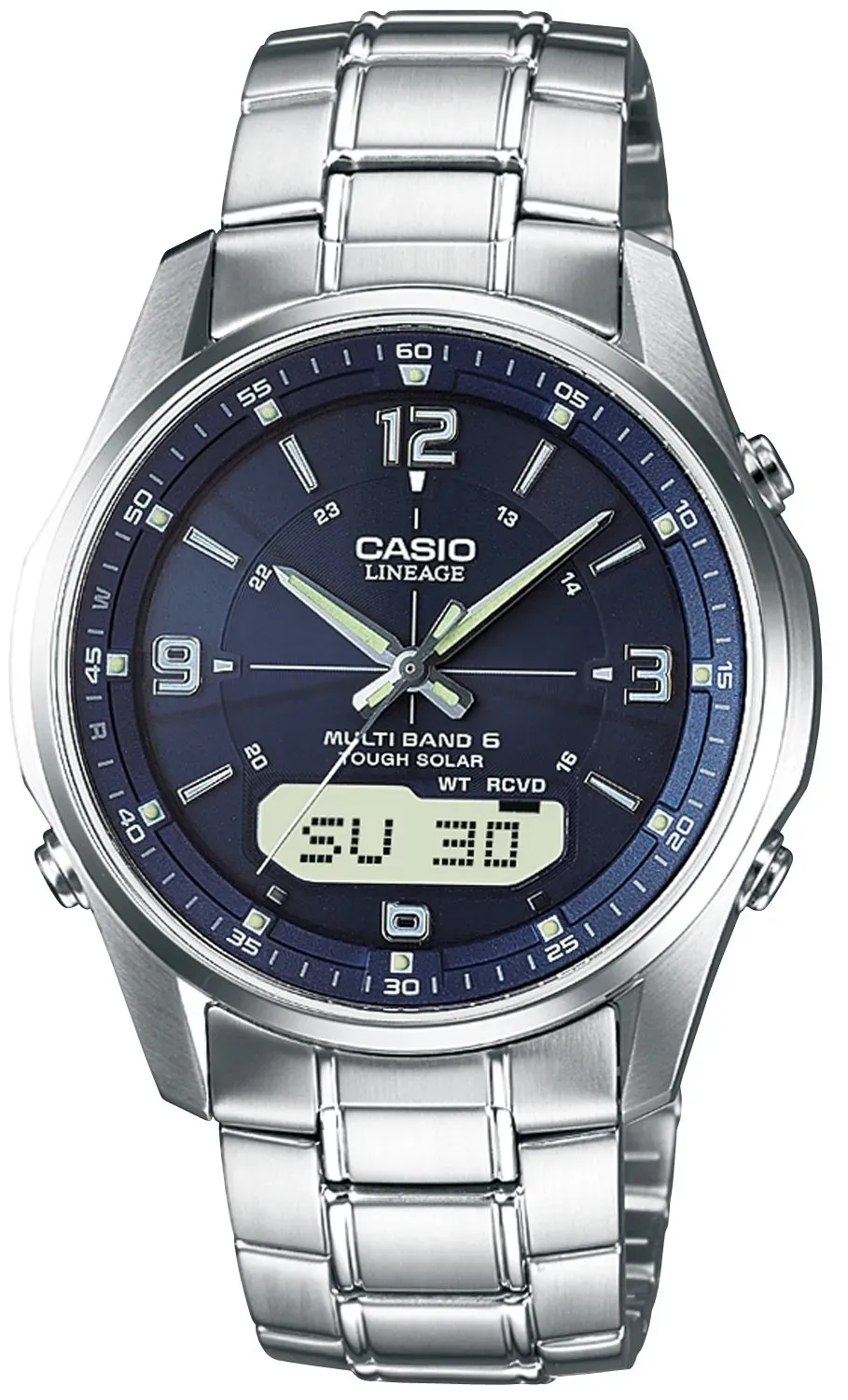 10 Händlerangebote bei billiger.de - Kategorie: Chronographen - Casio - Edelstahlgehäuse, Saphirglas, wasserdicht geprüft bis 5 bar, Edelstahlarmband mit Trisnap-Sicherheitsverschluss, DCF/MSF/WWVP/JJY/BPC-Funksignalempfänger für weite Teile Europas, den USA, Japan und China, Solarfunktion, LED-Light, automatischer Kalender, 12-/24-Stunden-Format, Weltzeit, Stoppuhr: 1/100 Sekunde bis max. 60 Minuten, 5 Tagesalarme - GTIN:4971850925460 ![]() kaufland.d e Casio LCW-M100DSE-2AER Herren Solar-Funkuhr