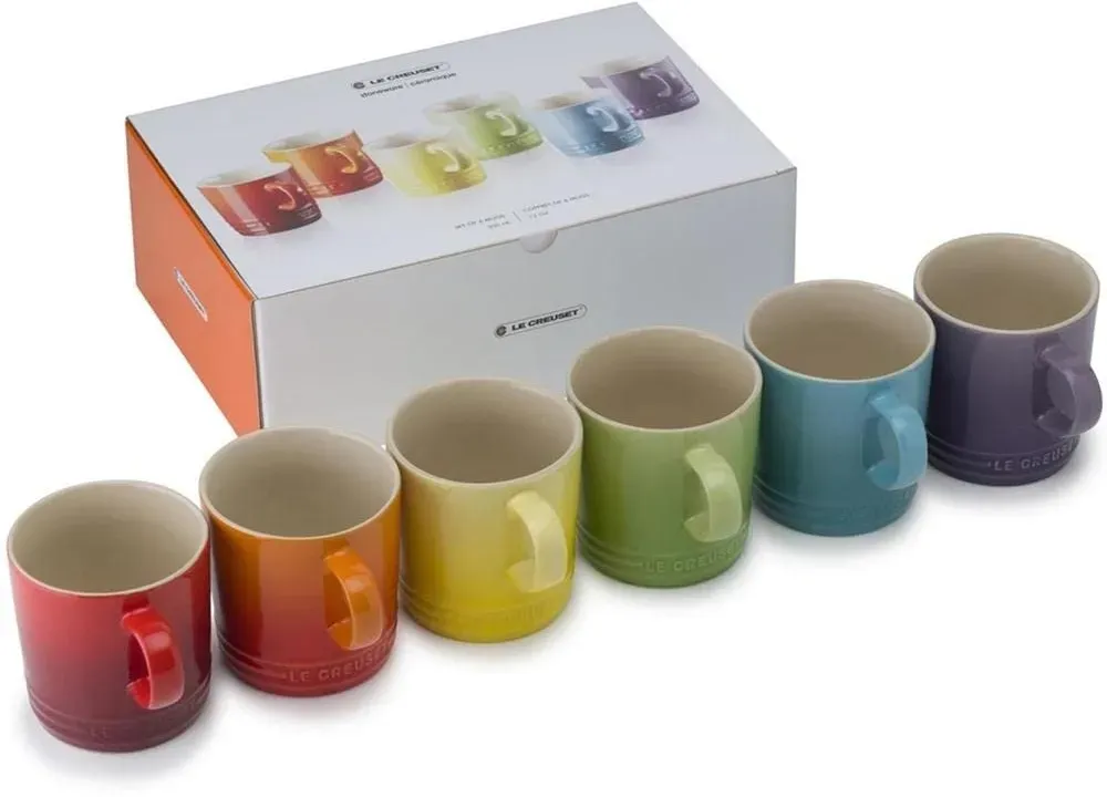 Auf Lager Versand durch AmazonLE CREUSET 6er-Set Becher aus Steinzeug, 350 ml, Regenbogen, 79114358359030
