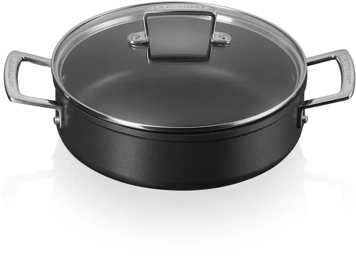 8 Händlerangebote bei billiger.de - Kategorie: Pfannen - Le Creuset - Profipfanne mit unserer besten Antihaft-Beschichtung, jetzt 4x stärker* (*von unabhängigen Prüflaboren auf Abnutzungsbeständigkeit mit Metallutensilien getestet), Für alle Herdarten inkl. Induktion Ideal für fettarmes, kalorienreduziertes Braten sowie die Zubereitung von empfindlichen Speisen, Perfektes Ablösen des Bratguts und einfache Reinigung durch die sehr abriebsbeständige, robuste 3-lagige Antihaftbeschichtung Ebenmäßige und effiziente Hitzeverteilung dank durchgängigem Aluminiummaterial an Topfboden und -wänden, Induktionsgeeignet durch magnetische Edelstahlplatte im Boden, Komfortabler und sicherer Halt durch durch genietete Griffe an Topf und Deckel Verwendung von Holz-, Kunststoff- oder Silikonutensilien sowie eine Reinigung per Hand zum Schutz der Beschichtung empfohlen, Spülmaschinengeeignet, 3 Lieferumfang: 1x Le Creuset Aluminium-Antihaft Profipfanne mit Deckel, Ø 28 cm, Maße: 38,2 x 29,1 x 14,03 cm, Herdauflagefläche: 20,5 cm, Gewicht: 2,05 kg, Farbe: Anthrazit/Silber, 51107280010502 - GTIN:0630870272841 Diese Bratpfanne in Azure bietet eine stilvolle Option für alle, die Wert auf Design und Funktionalität legen. ![]() ![]() Le Creuset Azure Bratpfanne 28 cm