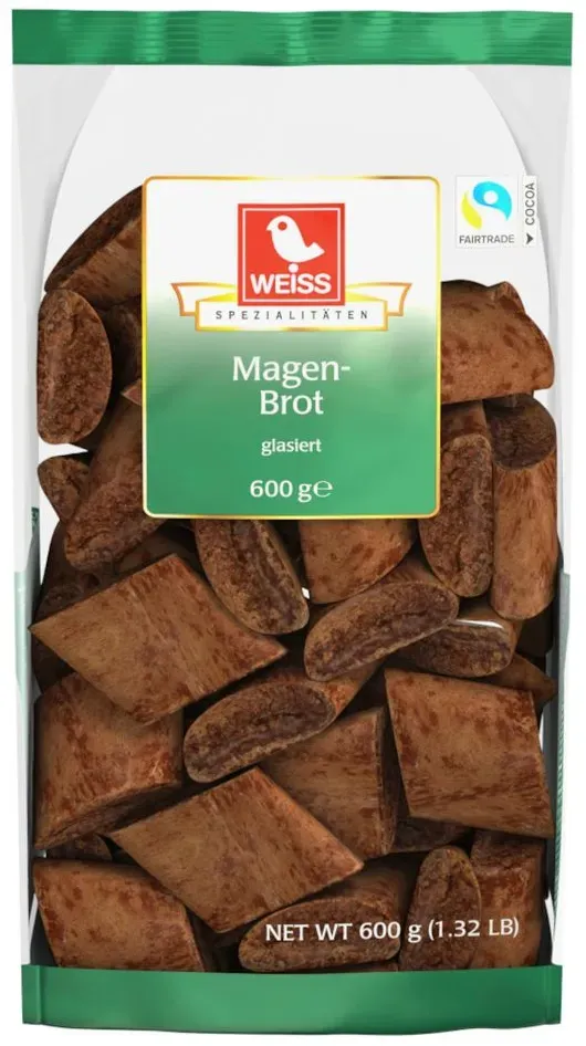 Verfügbarkeit: 3-5 Werktage - 10,47 €/kg - Kategorie: Kekse & Gebäck - Henry Lambertz GmbH & Co. KG - GTIN:4003160418001 - Weiss Magenbrot glasierte Lebkuchen mit ausgewählten Gewürzen 600gMagenbrot ist weit mehr als nur eine Süßigkeit €“ es ist eine kulinarische Reise in die Vergangenheit, ein Stück Kindheit und ein echter Klassiker unter den Leckereien. Mit dem 600g-Paket bringt Weiss dieses nostalgische Gefühl direkt nach Hause und präsentiert eine Delikatesse, die durch Authentizität, Geschmack und Qualität überzeugt.Ein Klassiker aus Honig, Gewürzen und SchokoladeDas Magenbrot von Weiss zeichnet sich durch seine charakteristische Mischung aus Honig, feinsten Gewürzen und einer zarten Schokoladenglasur aus. Das Ergebnis ist ein würzig-süßer Genuss, der nicht zu schwer im Magen liegt €“ daher auch der Name 'Magenbrot'.Traditionelle Rezeptur für den authentischen GeschmackWeiss setzt bei seinem Magenbrot auf traditionelle Herstellungsmethoden und ausgewählte Zutaten. Die feine Würze und der süße überzug schaffen ein harmonisches Gleichgewicht, das auf der Zunge zergeht.Für besondere Momente und ErinnerungenOb auf dem Weihnachtsmarkt, bei Kirmesbesuchen oder einfach so zwischendurch €“ Magenbrot weckt Erinnerungen. Mit der 600g-Packung von Weiss kann man sich diese Momente jederzeit ins eigene Zuhause holen. Ob zum Teilen mit der Familie, als Geschenk oder für den eigenen süßen Moment €“ Magenbrot ist immer eine gute Wahl.Aachener ... Diese Lebkuchen-Herzen mit Vollmilchschokolade sind ein beliebter Klassiker und in einem praktischen 6er-Pack erhältlich. ![]() ![]() Henry Lambertz GmbH & Co. KG Weiss Lebkuchen Herzen umhüllt von Vollmilchschokolade 6er Pack