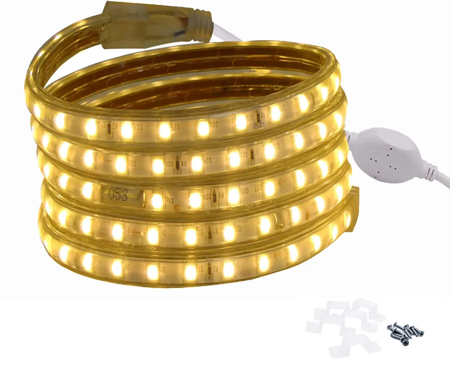 Auf Lager Versand durch AmazonFOLGEMIR 1m Warmweiß LED Band, 220V 230V Lichtleiste, 5050 SMD 60 Leds/m Strip, IP65 Lichtschlauch, helle Hintergrundbeleuchtung