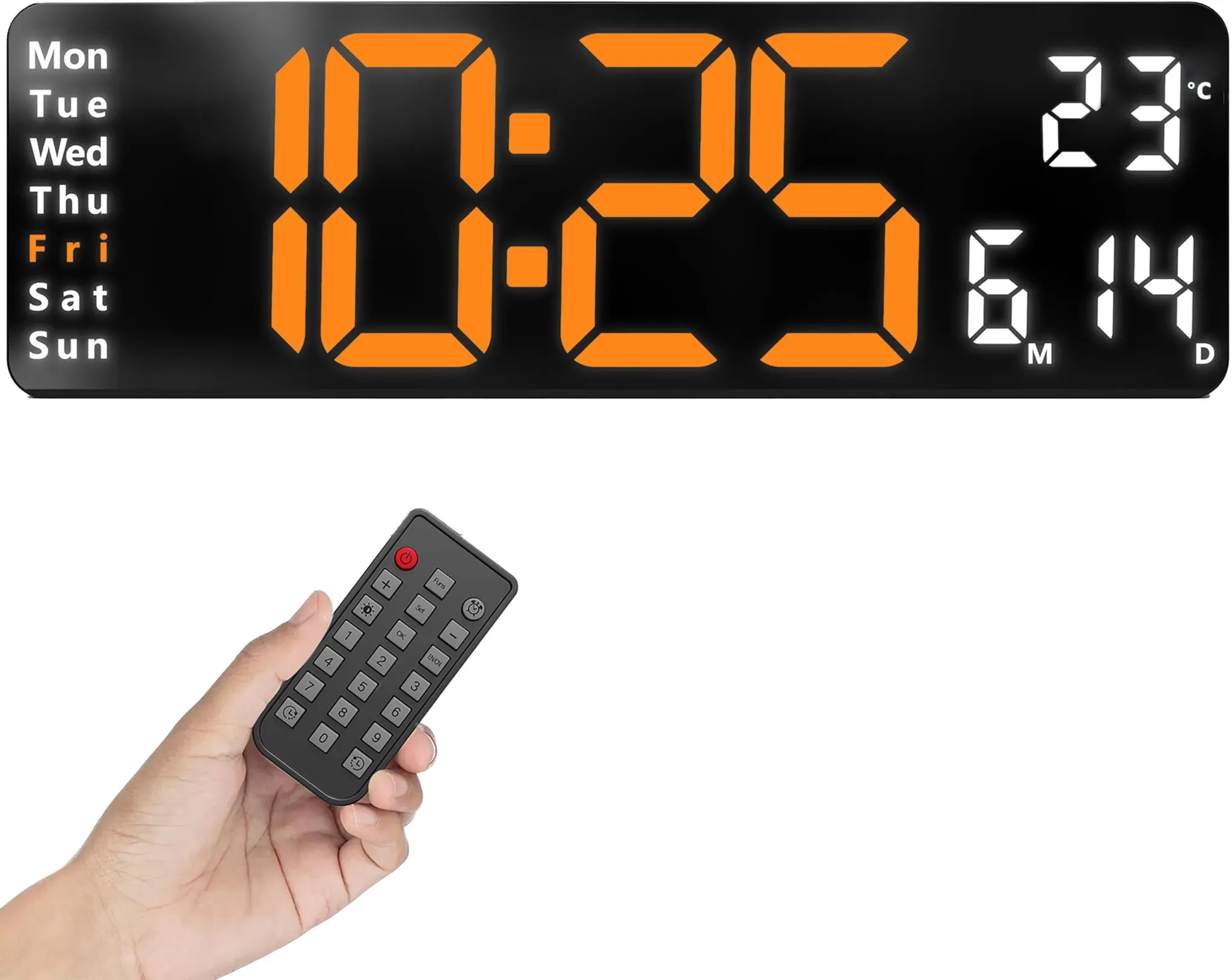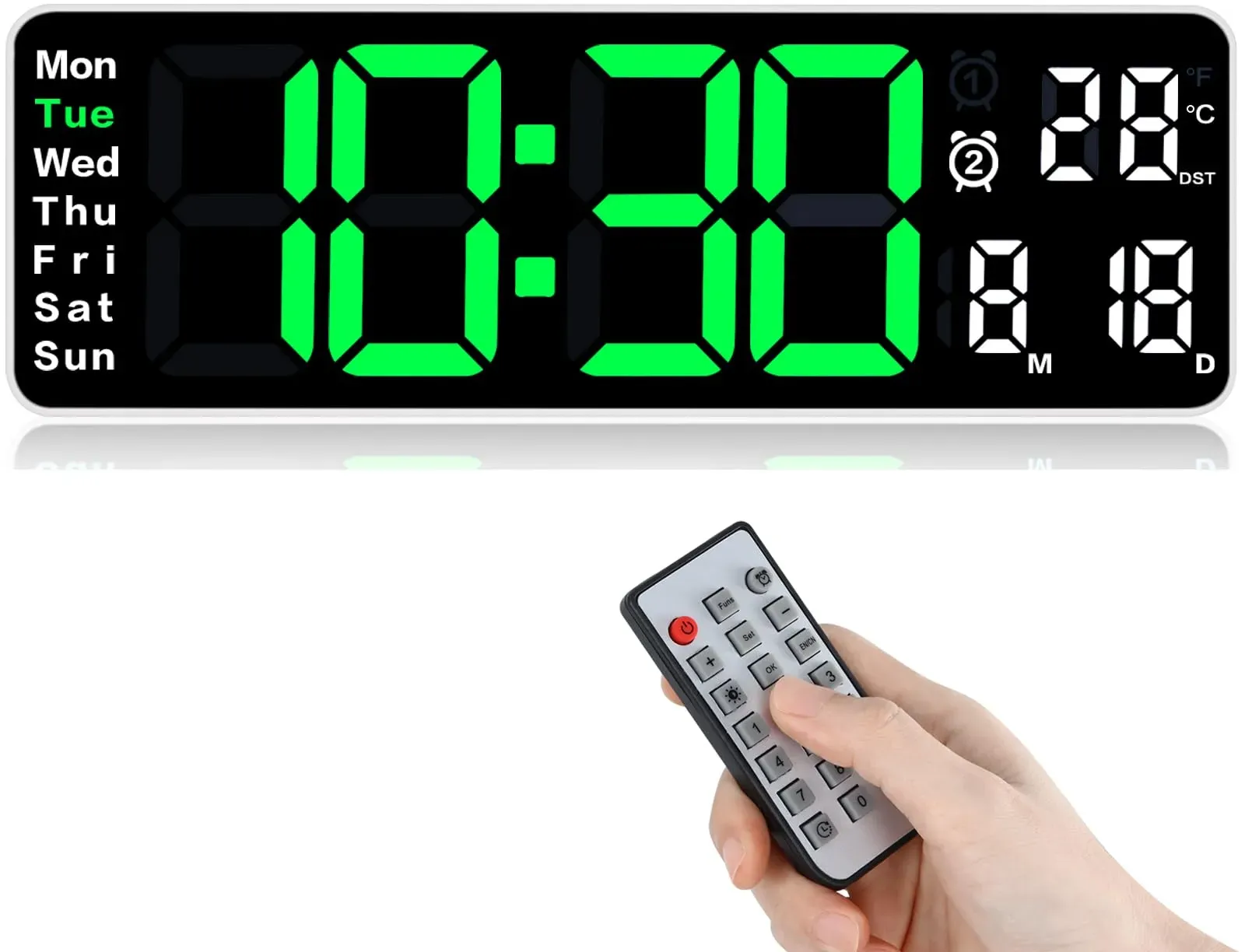 Verfügbarkeit: Auf Lager - Kategorie: Wanduhren - koolertron - 13-Zoll LED Wanduhr: Die 13-Zoll wanduhr digital groß kann Uhrzeit, Datum, Monat und Temperatur anzeigen und ist aus der Ferne gut sichtbar und ablesbar, ideal für den Einsatz in großen Räumen Timing- und Countdown-Funktionen: Der Wanduhr Digital verfügt über zwei Funktionen: Timing und Countdown (bis zu 99 Minuten und 99 Sekunden). Die Timing-Funktion unterstützt Zwischenpausen 10-Stufen-Helligkeitsdimmer: Die digitale Wanduhr verfügt über eine Helligkeitsanzeige, die in 10 Stufen einstellbar ist, Sie können sie manuell mit der Fernbedienung einstellen und blendfrei verwenden Eingebauter automatischer Dimmsensor: Die digital wall clock verfügt über einen integrierten automatischen Dimmsensor, der die Helligkeit automatisch an Lichtveränderungen anpassen und ausschalten kann, wenn sie nicht benötigt wird Speicherfunktion und Wecker: Integrierte Speicherfunktion: Legen Sie die AAA-Batterien (nicht im Lieferumfang enthalten) in die digital wanduhr ein, kein Zurücksetzen erforderlich, auch wenn der Strom ausfällt. Sie können zwei Sätze wiederholbarer Alarme zur Erinnerung festlegen Sommerzeitfunktion: Wenn in Ihrer Region Sommerzeit gilt, können Sie die €ž-€œ-Taste auf der Digitaluhr gedrückt halten, um automatisch vor-/zurückzuspulen, während das €žDST€œ-Symbol angezeigt/ausgeschaltet wird Breites Anwendungsspektrum: Die digitale Wanduhr eignet sich für Wohnzimmer, Küchen, Garagen, ... Diese batteriebetriebene digitale Wanduhr von MeYuxg bietet eine Funkuhrfunktion, Temperatur- und Kalenderanzeige und ist lautlos, ideal für Schlafzimmer. ![]() ![]() MeYuxg Digitale Wanduhr Batteriebetrieben, Funkuhr Digital, Led Digitaluhr, Digital Wall Clock mit Temperaturanzeige, Kalenderanzeige, Tischuhr Lautlos für Wohnzimmer, Schlafzimmer, Büro, Schule( Schwarz)