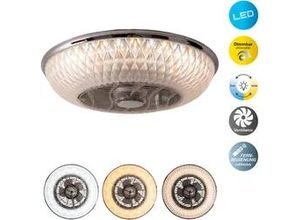 Lampen Leuchten Wohnen - - Diese luxuriöse LED-Deckenleuchte 'Viento' mit Ventilator präsentiert sich in einem edlen Design und lässt Ihren Wohnbereich oder Ihr Geschäftslokal in einem besonders schönen, wechselbaren Licht erstrahlen. Von Warmweiß über Kaltweiß bis zur Nachtlichtfunktion - Sie können die Einstellungen einfach bequem mittels IR-Fernbedienung steuern. Außerdem sorgt der integrierte Ventilator für eine angenehme Raumtemperatur. Mit einem minimalen Lärmpegel von 45 dB (A) und einer maximalen Luftgeschwindigkeit von 2,11 Meter in der Sekunde läuft er leise und kühlt die Raumluft gleichmäßig herunter. Die Deckenleuchte hat einen Durchmesser von 55 cm und ist 20 cm hoch. Sie ist aus klarem Kunststoff und Metall gefertigt., Optik/Stil: Farbbezeichnung: transparent, Optik Lampenschirm: Glasverzierung, Material: Material Gestell: Metall, Material Lampenschirm: Kunststoff, Maßangaben: Durchmesser Lampenschirm: 55 cm, Durchmesser: 55 cm, Höhe: 20 cm, Produktdetails: Schutzklasse: 2, Leuchtmittel: LED fest integriert, Anzahl Flammen: 1, Gewichteter Energieverbrauch: 36, Lichtfarbe: warmweiß - kaltweiß, Eigenschaften: dimmbar, Modellbezeichnung: 1379131, Einbauort: Decke, Betriebsart: Netzkabel, Lichtstrom in Lumen: 3.160 lm, Farbtemperatur in Kelvin: 3000-4000-6000, Funktionsweise: mit Nachtlichtfunktion, Lichtfarbe wechselbar, mit Fernbedienung bedienbar, Funktionen: Ventilatorfunktion, Lieferumfang: Aufbauanleitung, Einsatzbereich: Indoor, Schutzart: IP20, Spannung: ... Diese Deckenleuchte bietet ein modernes, geometrisches Design mit hoher Leistung und Fernbedienung, ideal für größere Wohnzimmer. ![]() ![]() ASJK LED Deckenleuchte Dimmbar Modern 82W Deckenlampe LED mit Fernbedienung, 3000k-6000k Geometrisch Multifunktional Deckenbeleuchtung für Wohnzimmer ?105cm?Schwarz?