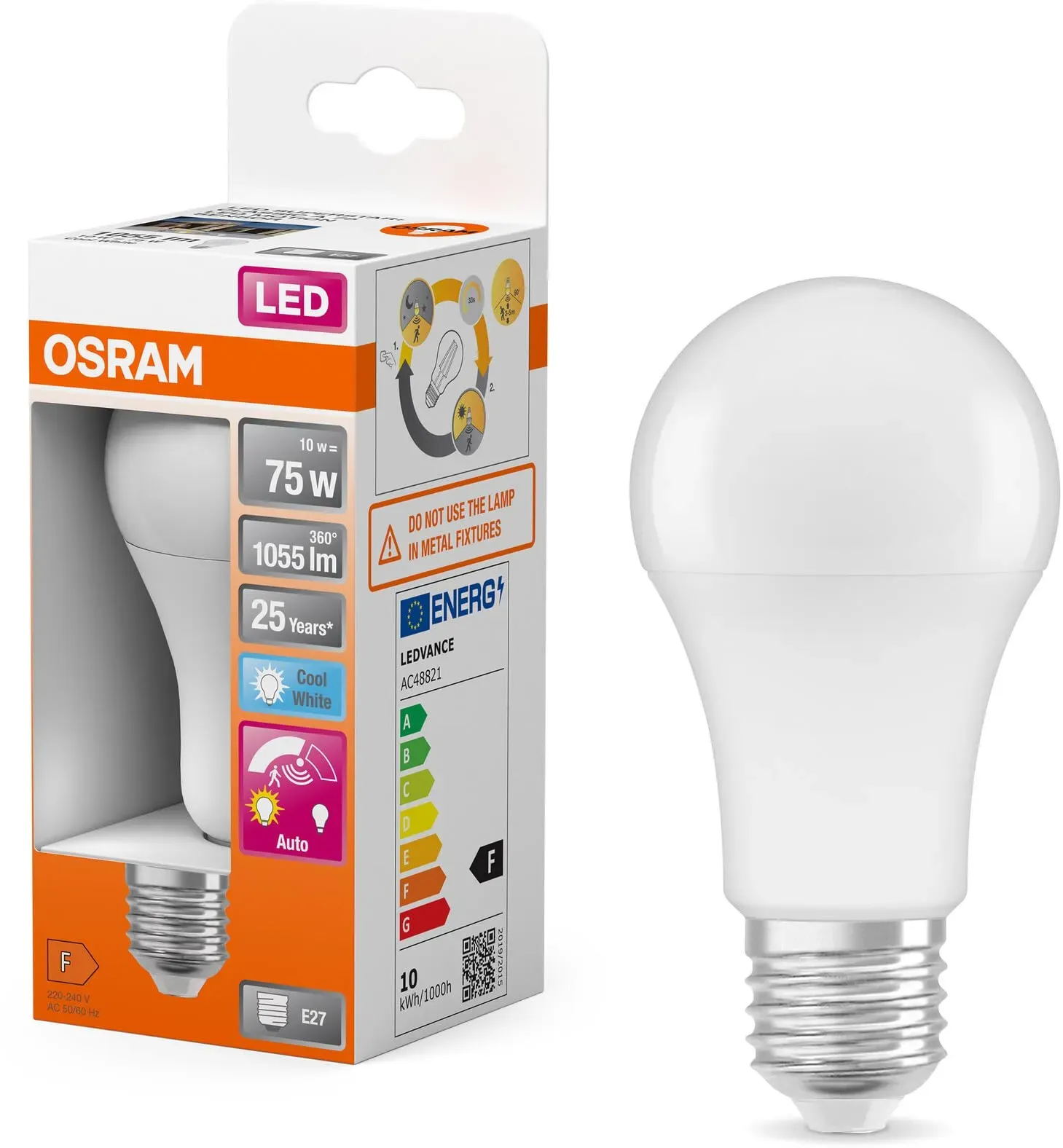 LED-Lampen Lampen & Leuchten Leuchtmittel Smarte Glühbirnen - EAN:7061118478627 - Sparen Sie Geld, indem Sie die LED-Technologie unserer LED-Glühbirnen E27 7W Kaltweiß 6000K nutzen. Unsere LED-Glühbirnen E27 7W verbrauchen 7 Watt, geben aber ein Licht ab, das 45 Watt entspricht. Dank der LED-Glühbirnen E27 7W sparen Sie 35% und - gefunden von Kelkoo ![]() ![]() osram homelighting OSRAM LED-Lampe Star A75 Motion Sensor 10W 840, 4000K kaltweiß, E27, 1055 lm, 30 Sek Abschaltung, Microwavesensor