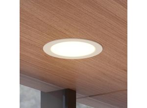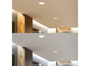 Lampen Leuchten Wohnen - - Großes LED-Downlight Rida mit runder, weißer Einfassung; Lichtfarbe steuerbar via DIP-Schalter, IP44 Rida ist ein praktischer Lichtspender mit für eine Einbauleuchte vergleichbar großen Abmaßen, der sowohl privat als auch gewerblich vielfältig zum Einsatz kommen kann. Die hohe Schutzart spricht für eine Nutzung auch in Feuchträumen, weil Feuchtigkeit dem Einbauspot nichts anhaben kann, so dass er auch dienlich für die Beleuchtung von Bädern ist. Seine schlichte Gestalt mit weißer Oberfläche und Rundform passt in viele zeitgenössische Umgebungen, ist aber im Grunde genommen auch recht zeitlos. Daher kann man das LED-Einbau-Downlight überall dort einsetzen, wo man möchte. Sofern man das möchte und ein externer Dimmer vorhanden ist, kann auch die Helligkeit der LEDs reguliert werden. Besonders interessant, auch bei der gewerblichen Nutzung, ist zudem die Möglichkeit, die Lichtfarbe über einen DIP-Schalter zu variieren. Damit kann man die passende Lichtfarbe vor der Montage auswählen und einstellen. Ein relativ breiter Abstrahlwinkel macht eine flächige Raumausleuchtung möglich, wobei in größeren Räumen gerne mehrere Einbausspots verwendet werden können, damit die Beleuchtung hell und großflächig erfolgt. - CCT-Farbeinstellung vor Leuchteninstallation über DIP-Schalter möglich - IP44, hohe Schutzart für die Nutzung in Feuchträumen - dimmbar - breiter Abstrahlwinkel für flächige Ausleuchtung - Versandkostenfrei: false - Lieferzeit: 1 Tag - Sofort ... ![]() ![]() Briloner Desi 2 in 1 LED Aufbauspot und Einbaustrahler, 2 in 1 LED Aufbauspot und Einbaustrahler, Schwenkbar, Flach, Warmweißes Licht, Weiß, Ø9 ... - Weiß