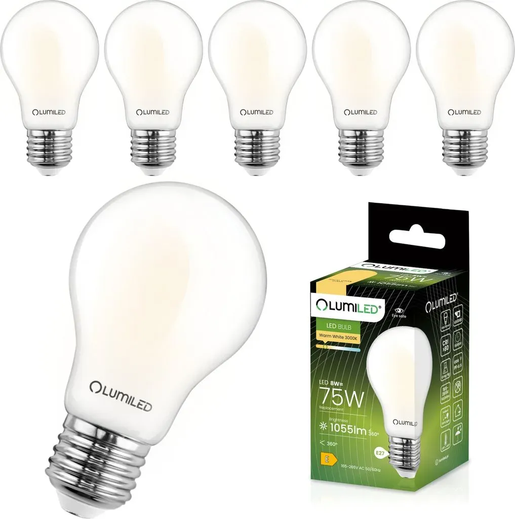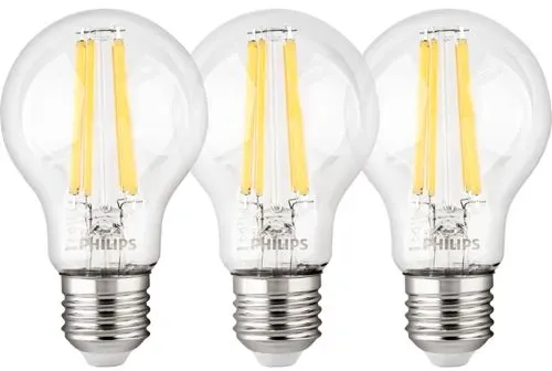 EEK: A - Kategorie: LED-Lampen - Philips - GTIN:8718699696955 - Philips LED-Lampe E27 8,5W (75W) 2700K Filament, warm-weiß, 3er SetKlassische Glühlampenform mit warmweißem Licht für eine gemütliche Lichtstimmung. E - 8,18 Euro bei TECHNIKdirekt - gefunden von billiger.de Dieses 6er-Pack von Lumiled bietet milchige Filament-Lampen für eine weichere Lichtverteilung. ![]() ![]() Lumiled A60 E27 LED Lampen 6 Stück, 8W (ersetzt 75W), 1055 lm milchig Filament, Leuchtmittel, 3000K Warmweiß, 360 Abstrahlwinkel vintage