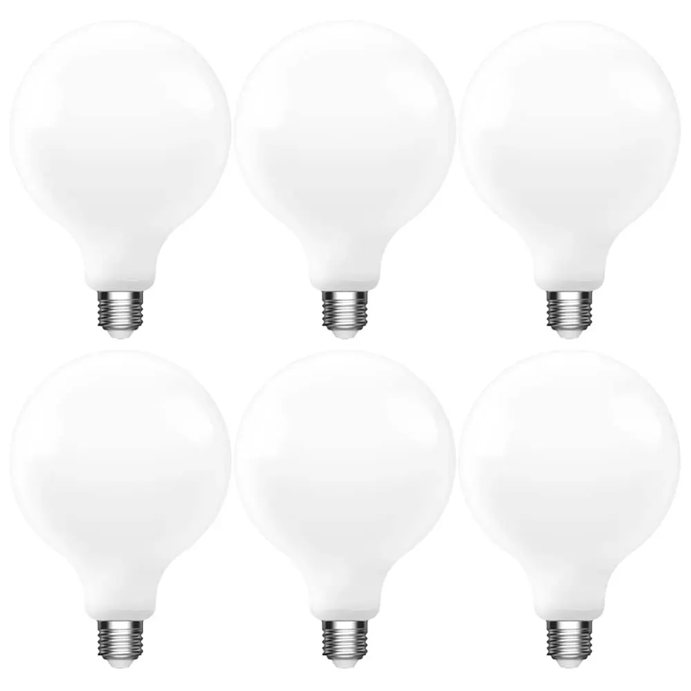 EEK: D - Kategorie: LED-Lampen - LVWIT - GTIN:6976222801036 - Vintage-/Retro-Look: Dank des Edison-Designs ist diese Deko-Lampe eine wahre Augenweide, die sowohl in einem rustikalen als auch in einem modernen Interieur zu überzeugen weiß. Technische Eigenschaften: Ihre besonders stimmungsvolle Lichtfarbe (2700 K) und der Abstrahlwinkel von 300 machen sie zu einem würdigen Ersatz für eine herkömmliche 75 W Lampe. Und dabei verbraucht diese LED-Lampe gerade einmal 7.5 Watt. Breite Anwendung: Ideal für alle dekorativen Leuchten wie Kronleuchter, Pendelleuchten, und Wandleuchten in Unternehmen, Restaurants und Bars, aber natürlich auch in Haus und Garten. Langer Lebenslauf: Die Filament E27 besitzen die Energieeffizienzklasse D, sie leuchten 15.000 Stunden und halten 15-mal länger als Glühlampen; Falls Glühbirne beschädigt oder durchgebrannt ist, können Sie uns kontaktieren, um Ersatz zu bekommen!!! - 24,99 Euro bei Amazon Marketplace Home - gefunden von billiger.de Dieses 6er-Pack von NCC-Licht bietet dimmbare Globe-Lampen für eine dekorative und anpassbare Beleuchtung. ![]() ![]() NCC-Licht 6 x LED Filament Leuchtmittel Globe G120 8,6W = 75W E27 opal 1055lm warmweiß 2700K DIMMBAR