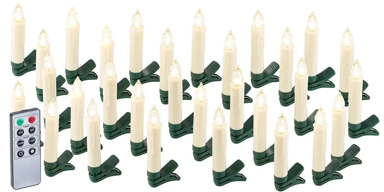 Auf Lager Versand durch AmazonEldnacele 30 stk LED Lichterkette Kerzen mit Fernbedienung, Timer und Dimmer, Kabellos Kerzenlichter mit Clip, Flammenlose Weihnachtskerzen für Tannenbaum Weihnachtsbaum, Hochzeit, Geburtstags, Party