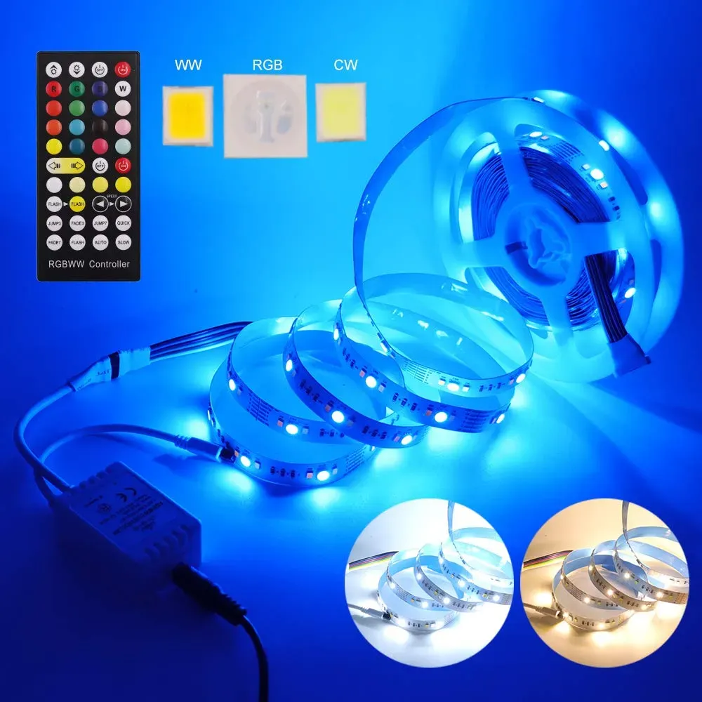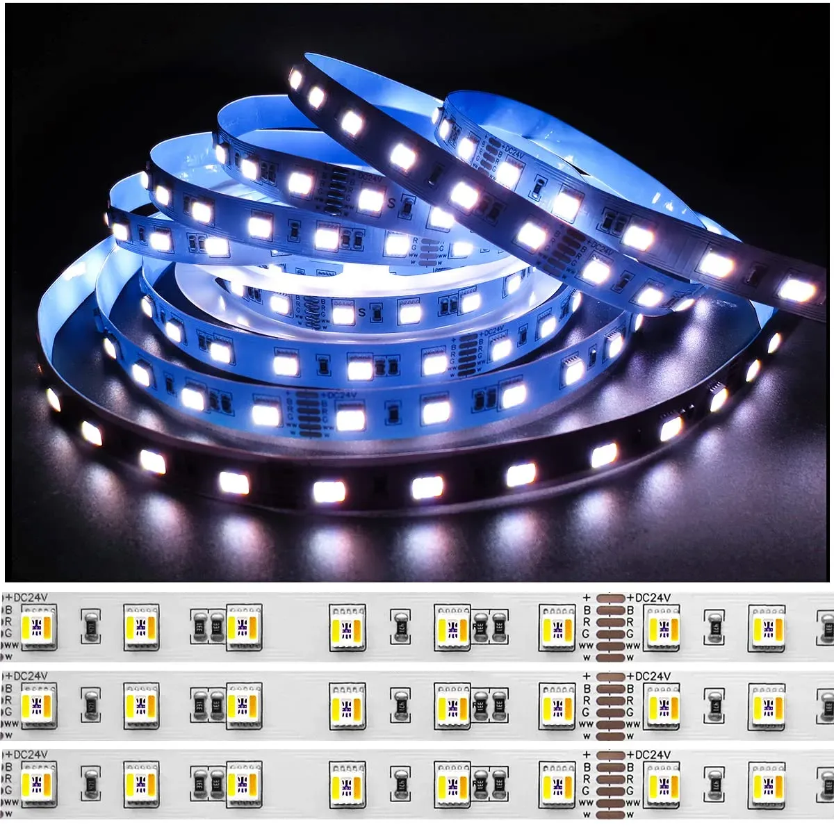 Auf Lager Versand durch AmazonLED RGB CCT RGBW CW WW Streifen RGB+CCT Farbwechsel Weißwechsel Bunt 24V 60leds selbstklebend mit Warmweiß 5050, 5m Rolle, Kaltweiß Strip
