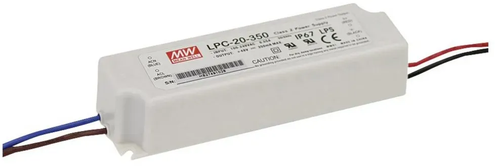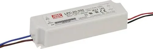 Kategorie: Sonstige Elektroinstallationsartikel - MeanWell - GTIN:4711287440941 - LED-Netzteil im Kunststoffgehäuse mit Konstantstromausgang (C.C.). Schutzart IP67. - 11,07 Euro bei voelkner - gefunden von billiger.de ![]() ![]() MeanWell Mean Well LPC-20-350 LED-Treiber Konstantstrom 16.8 W 0.35 A 9 - 48 V/DC nicht dimmbar, überlastschutz 1 St.