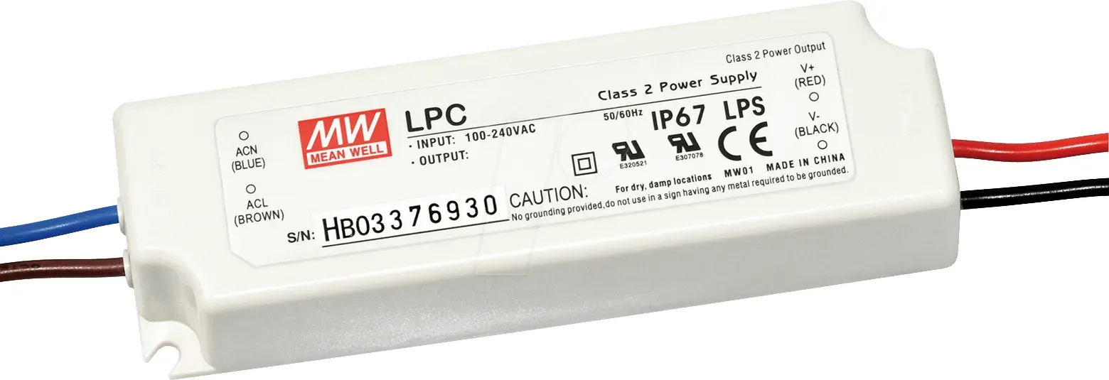 2 Händlerangebote bei billiger.de - Kategorie: Sonstige Elektroinstallationsartikel - MeanWell - LED-Netzteil im Kunststoffgehäuse mit Konstantstromausgang (C.C.). Schutzart IP67. - GTIN:4711287440941 Manomano.d e