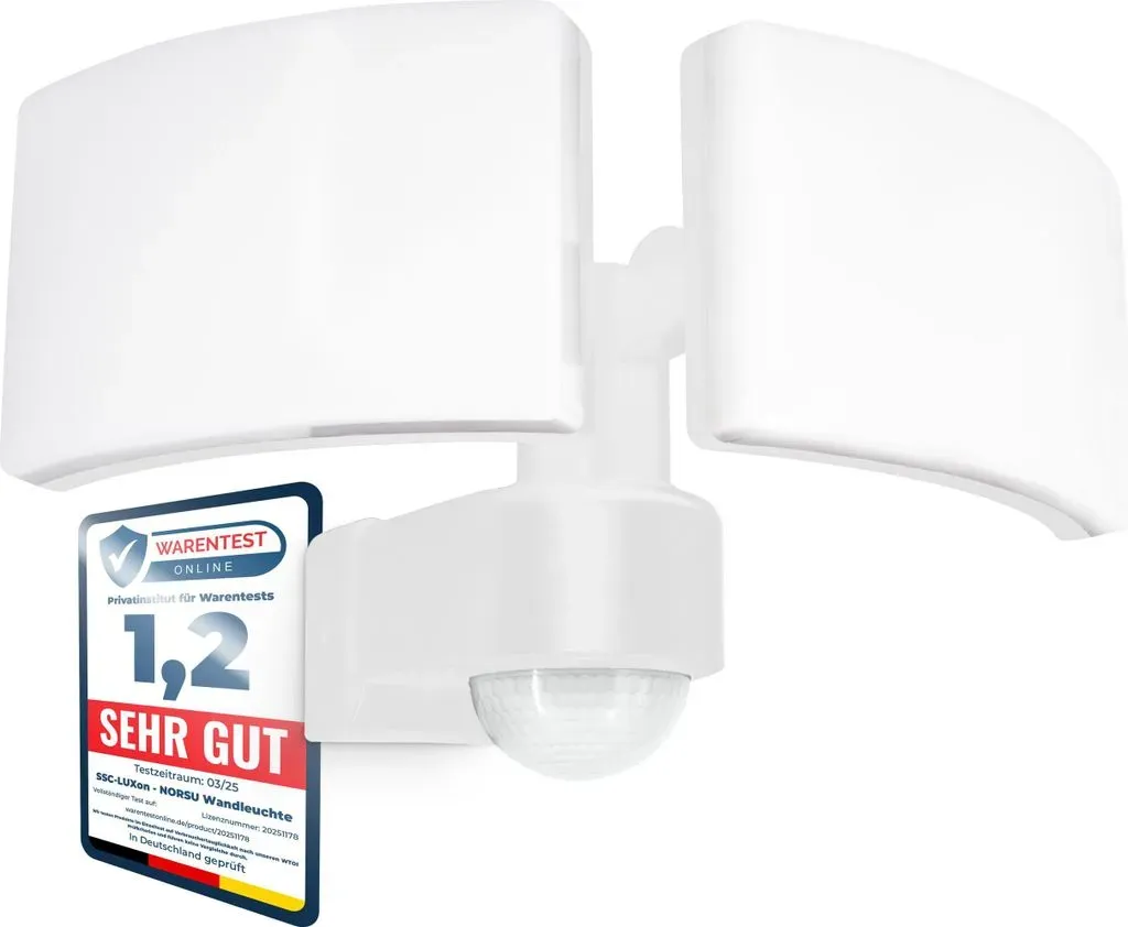 5 Händlerangebote bei billiger.de - Kategorie: Gartenbeleuchtung - B.K.Licht - IDEAL FüR AUßEN - Unsere Wandleuchte ist bestens geeignet für Außenbereiche als Balkon Beleuchtung, Terrassenbeleuchtungen, Treppenbeleuchtung oder Gartenbeleuchtung sowie als Kellerlampe im Haus VERSTELLBARE LAMPE - Die Außenleuchte verfügt über einen neigbaren Strahler (nach vorne 45 , vertikal 135 ) und ein kippbares LED Panel (90 nach hinten). Der Erfassungswinkel liegt bei 180 INDIVIDUELLE LEUCHTZEIT - Die Ansprechschwelle unserer Außenlampe mit Bewegungsmelder mit IP44 Schutzart ist stufenlos einstellbar. Zudem können Sie die Lichtdauer von 3 Sek. bis 7 Min. einstellen EXTREME HELLIGKEIT - Unsere Außenlampe mit Sensor strahlt mit 4.000 Kelvin und 2.300 Lumen. Der Außenstrahler leuchtet somit Hof, Wand, Garten, Einfahrt, Terrasse, Hauswand oder Haustür perfekt aus WEITERES SORTIMENT - Zusätzlich zu unseren Außenwandleuchten bieten wir unseren Kunden Leuchten für Innen, Ihr Wohnzimmer und Schlafzimmer sowie Deckenlampen und weitere Wandstrahler an - GTIN:4057722004379 Der SSC-LUXon NORSU ist ein Doppelstrahler mit Eck-Adapter und Dämmerungssensor, der eine gute Abdeckung bietet. ![]() ![]() SSC-LUXon NORSU Außenleuchte mit Bewegungsmelder Doppel Strahler - Aussenlampe inkl. Eck-Adapter & Dämmerungssensor IP65 neutralweiß