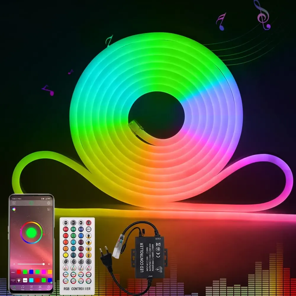 Kategorie: Gartenbeleuchtung - kisufu - 2-Draht LED Leuchten Seil: Wasserdichtes Seillicht im Freien mit verdicktem transparentem rundem Kunststoffrohr, wasserdicht, wasserdichter Grad IP65, starke Flexibilität, Hitzebeständigkeit, Haltbarkeit, Seillicht ist für den Außen- oder Innenbereich geeignet. Beachten Sie, dass das Seillicht Hochspannungs-Lichtstreifen ist, es kann nicht unter Wasser oder neben dem Schwimmbad verwenden. Waterproof: the outer layer of the light tube with protection class IP20 is a transparent tube, so that the LED can be used indoors and outdoors even in rain and snow. (The controller is not waterproof) Geringer Stromverbrauch - Ultrahelle LED-Leuchten arbeiten bei niedrigen Temperaturen, mit einer Lebensdauer von mehr als 50.000 Stunden, sehr gleichmäßiger Lichtemission, UV-Beständigkeit, kein Quecksilber, keine Schädigung von Mensch und Umwelt, Plug-and-Play, keine Verkabelung, 220V Wechselstrom betrieben. Anwendbare Szene: Transparentes PVC-Rohrset-Lichterkette, das 144 superhelle Warmweiße LED-Leuchten enthält, sehr geeignet für Landschaftspartys, Hochzeiten, Fenster, Zäune und weihnachtliche Dekorationsbeleuchtung. DIY: from indoor to outdoor use, LED light tube is ideal for parties and lighting, as the light tubes can be used in many different scenarios: bedroom, balcony, door, garden, lawn, fence, wedding, party. - 16,99 Euro bei Amazon Marketplace Home - gefunden von billiger.de Für 18.99 Euro erhalten Sie hier einen RGB LED Strip von XUNATA mit Fernbedienung und IP65 Wasserdichtigkeit, ideal für farbige Akzente. ![]() ![]() XUNATA 3M LED RGB Strip,AC 220V 230V IP65 Wasserdicht Mehrfarbig Ersetzen SMD 5050 60leds/m LED Lichtband mit 24 Tasten IR-Fernbedienung für Bar Decke Counter Cabinet Weihnachten Party Dekoration (3M)