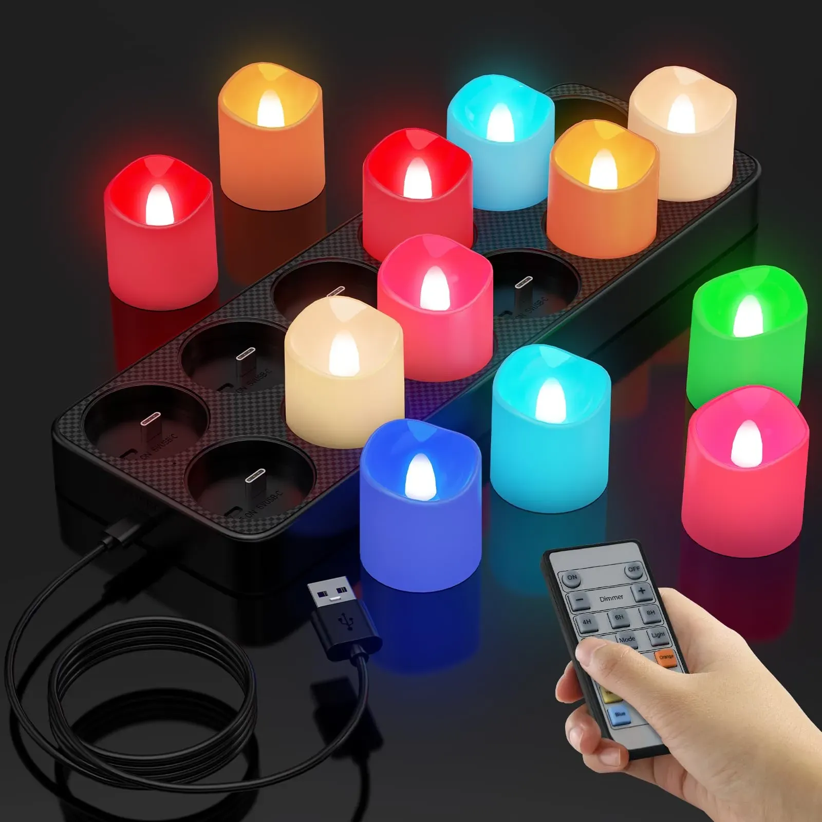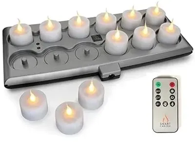 Kategorie: Kerzen - Ymenow - Aufladbare Teelichter mit Ladestation: Die aufladbarer Teelichter kommt mit einer praktischen Ladestation und einem USB-Kabel. Die Teelichter LED aufladbar lassen sich bequem aufladen, ohne ständig Batterien wechseln zu müssen eine umweltfreundliche und praktische Lösung für elektrische Teelichter. LED Teelichter mit Fernbedienung: Mit der mitgelieferten Fernbedienung steuern Sie alle Funktionen dieser led kerze bequem von Entfernung: Ein-/Ausschalten, Helligkeitsanpassung, Farbmodi und Timer für maximalen Komfort. LED Teelichter mit Timerfunktion: Die led teelicht mit timer unterstützen 4H/6H/8H-Zeitschaltpläne. Die Kerzen schalten sich automatisch aus und ein, was Zeit und Energie spart. RGB LED Kerzen mit 2 Farbmodi: Im RGB-Modus wechselt das Licht automatisch zwischen 7 Farben (Rot Grün Blau Gelb Pink Cyan Weiß). Im Monochrom-Modus wählen Sie statisch 7 einzelne Farben (Weiß Rot Blau Grün Orange Blau Lila). Sicher & Passend für Verschiedene Anlässe: Ohne offene Flammen, Rauch oder Wärme bieten diese led kerzen mit flackernder flamme eine sichere Alternative zu echten Kerzen (perfekt für Familien mit Kindern/Tieren). Sie eignen sich als led kerze oder Set für Dinner, Partys, Hochzeiten, Halloween, Weihnachten sowie als Dekoration für Zuhause/Terrasse. - 44,99 Euro bei Amazon Marketplace Home - gefunden von billiger.de Dieses hochwertige 12er-Set ist wiederaufladbar, wasserdicht und bietet eine flackernde Flamme, ideal auch für den Außenbereich. ![]() ![]() Smart Candle Led Teelichter wiederaufladbar mit Fernbedienung und Ladestation, elektrische Led-Kerzen, Flackernde Kerze ohne Flamme wasserdicht auch für Outdoor, Teelicht aufladbar 12 Stück