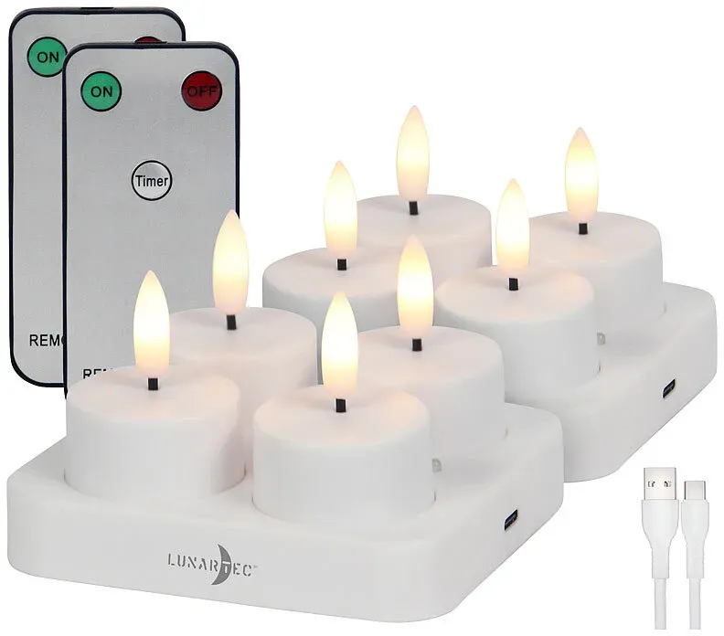 Kerzenständer, Kerzen & Raumdüfte Flammenlose Kerzen Gesamtsortiment Wohnen Deko + Accessoires Kerzen + Feuer LED Kerzen Dekoration - EAN:5707310350003 - Set aus 4 Teilen, benötigt 1 CR2032-Batterie pro Kerze (enthalten), mit Timer-Funktion. Die Kerzen können mit der separat erhältlichen Sirius Standardfernbedienung gesteuert werden. - gefunden von Kelkoo Ein praktisches 8er-Set wiederaufladbarer LED-Teelichter mit USB-Ladestation, Fernbedienung und Timer. ![]() ![]() Lunartec 8er-Set LED-Akku-Teelichter mit USB-Ladestation, Fernbedienung, Timer