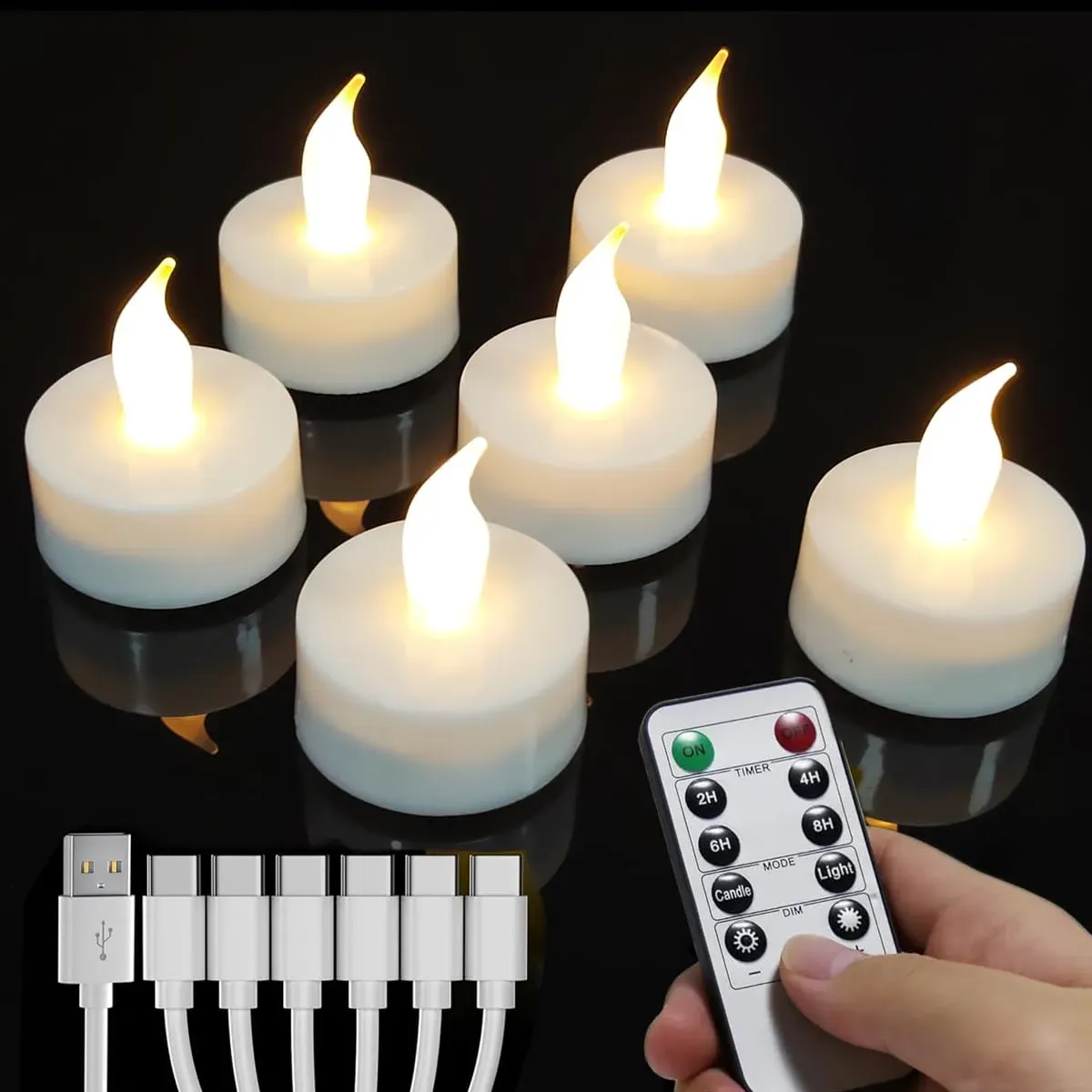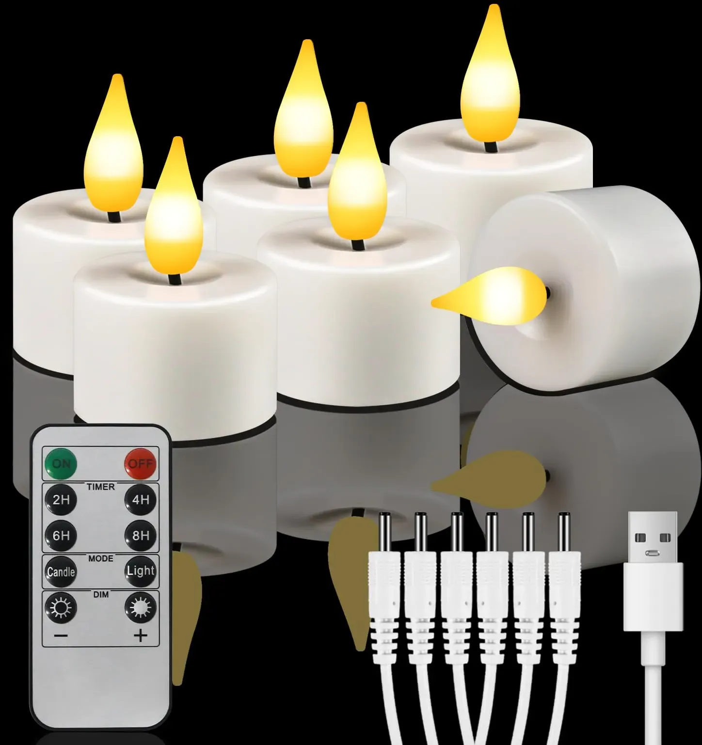Gewöhnlich versandfertig in 3 bis 4 TagenLunartec LED Teelichter aufladbar: 6er-Set Akku-LED-Teelichter mit realistischer Flamme und Fernbedienung (Kerzen weiß, wiederaufladbare, USB)