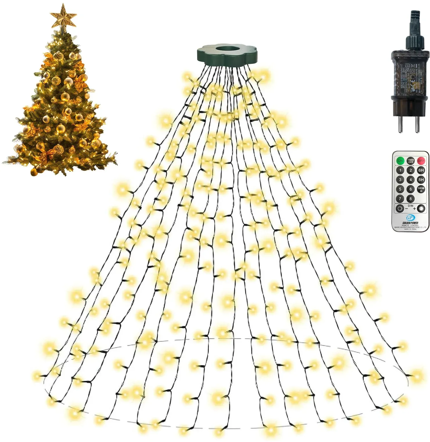 Auf Lager Versand durch AmazonGcstnn Lichterkette Weihnachtsbaum, 2M 400er LED Christbaumbeleuchtung mit Ring und 16 Girlanden, Timer, Wasserdicht für 1.5-2.5M Tannenbaum Weihnachtsdeko Außen Innen, Warmweiß