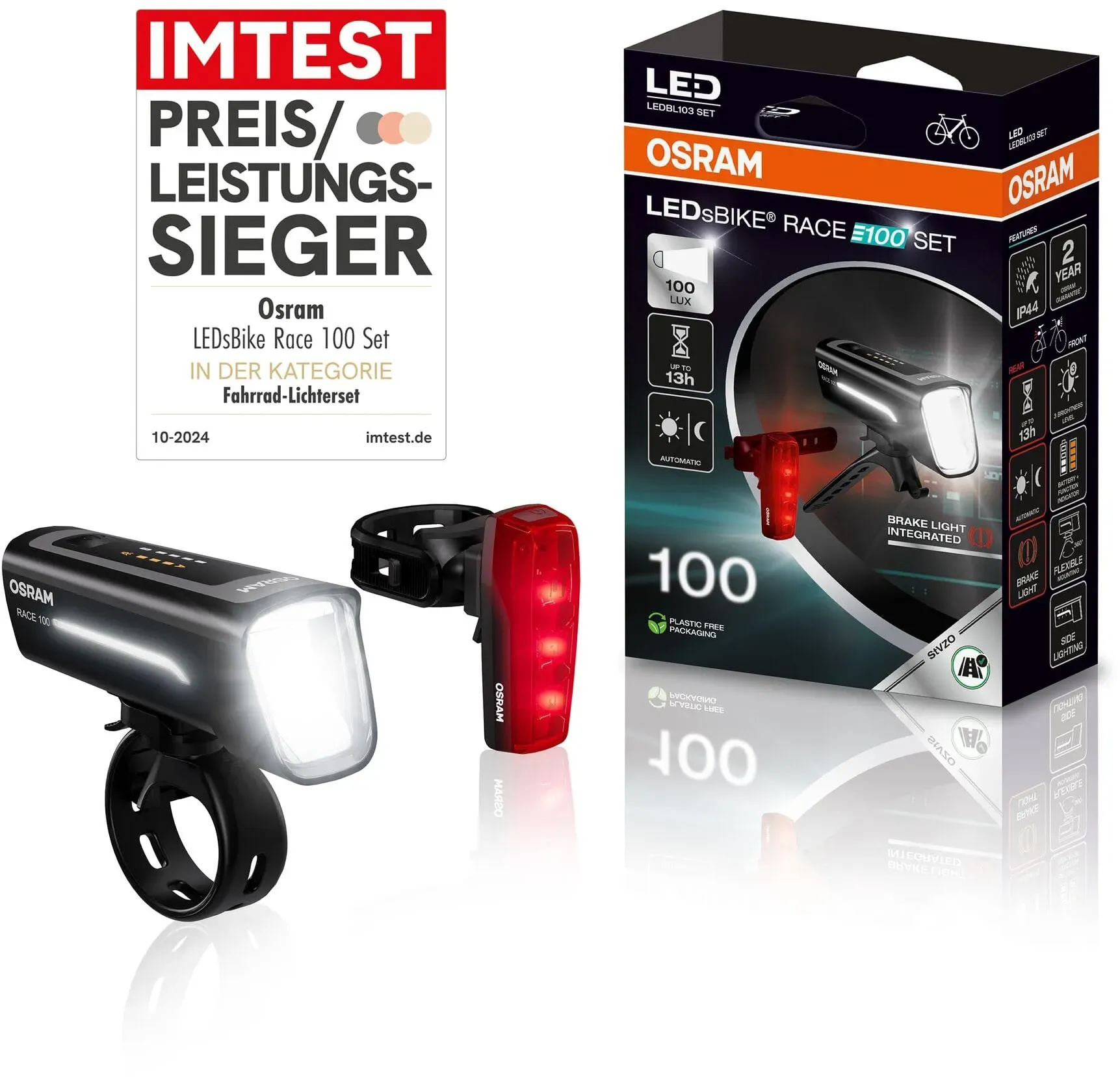 Sofort versandfertig, Lieferzeit ca. 1-3 WerktageOsram LEDsBike RACE 100 Fahrradleuchte (Front- & Rückleuchte)