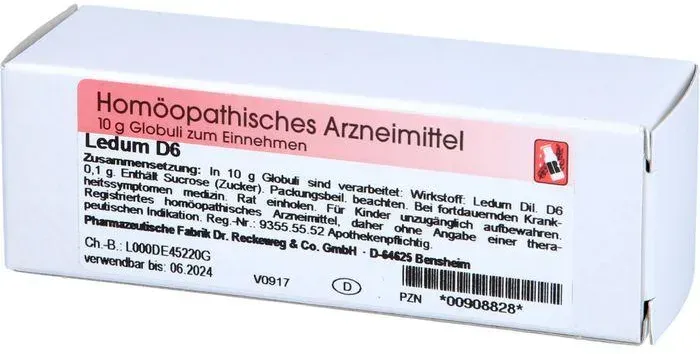Verfügbarkeit: Auf Lager - Kategorie: Nahrungsergänzungsmittel - REMEDIA Homöopathie GmbH - GTIN:5996386155159 - Ledum palustre D6, 10g Globuli - 11,36 Euro bei Amazon Marketplace Health & Personal Care - gefunden von billiger.de Diese Dilution bietet eine flüssige Alternative für Anwender, die Tropfen bevorzugen. ![]() Ledum D 6 Dilution 20 ml